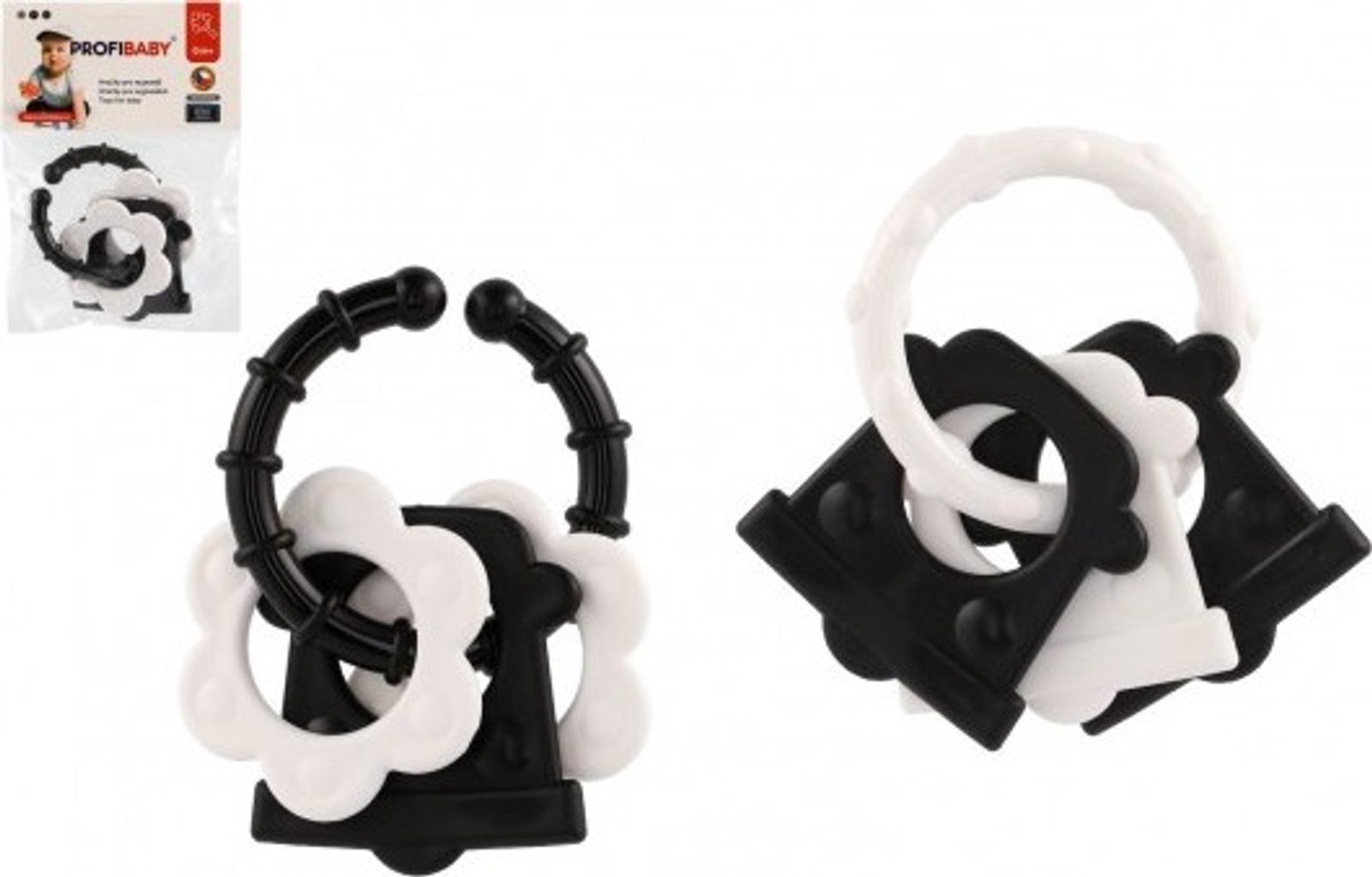 Chrastítko s úchytem pro lepší držení, rozvíjí zrakové a motorické dovednosti dítěte. Vyrobeno ze zdravotně nezávadných materiálů, splňujících náročné hygienické normy. Vhodné od narození.