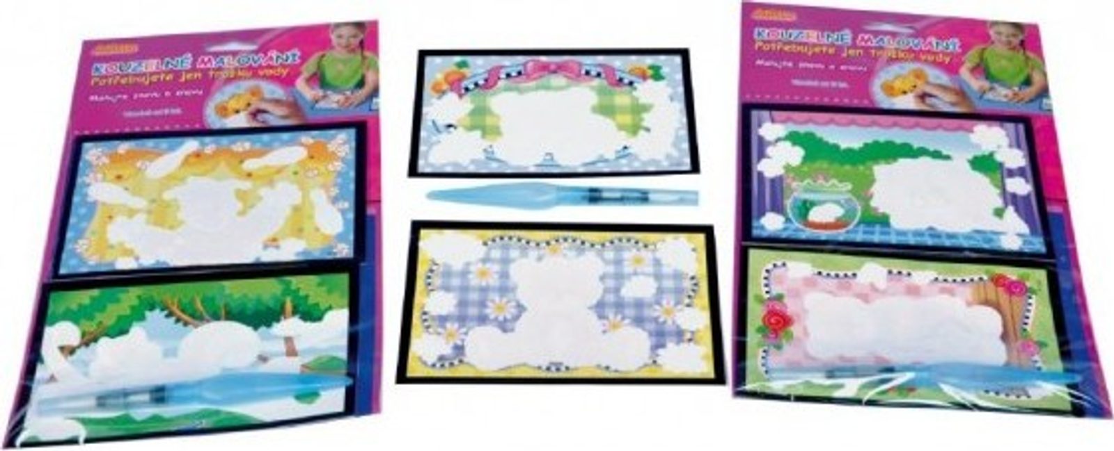 Do tužky nalijte vodu a malujete s ní na obrázek, obrázek se po použití vody objeví a až voda zaschne - zase zmizí a můžete malovat znovu. Můžete použít i obyčejný štětec a kelímek s vodou - je to pro ně opravdu zábava a pro rodiče také, protože vodou se nic neušpiní jako s barvami...