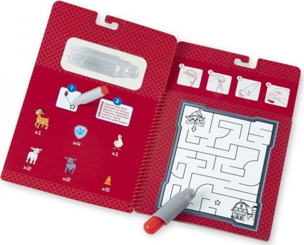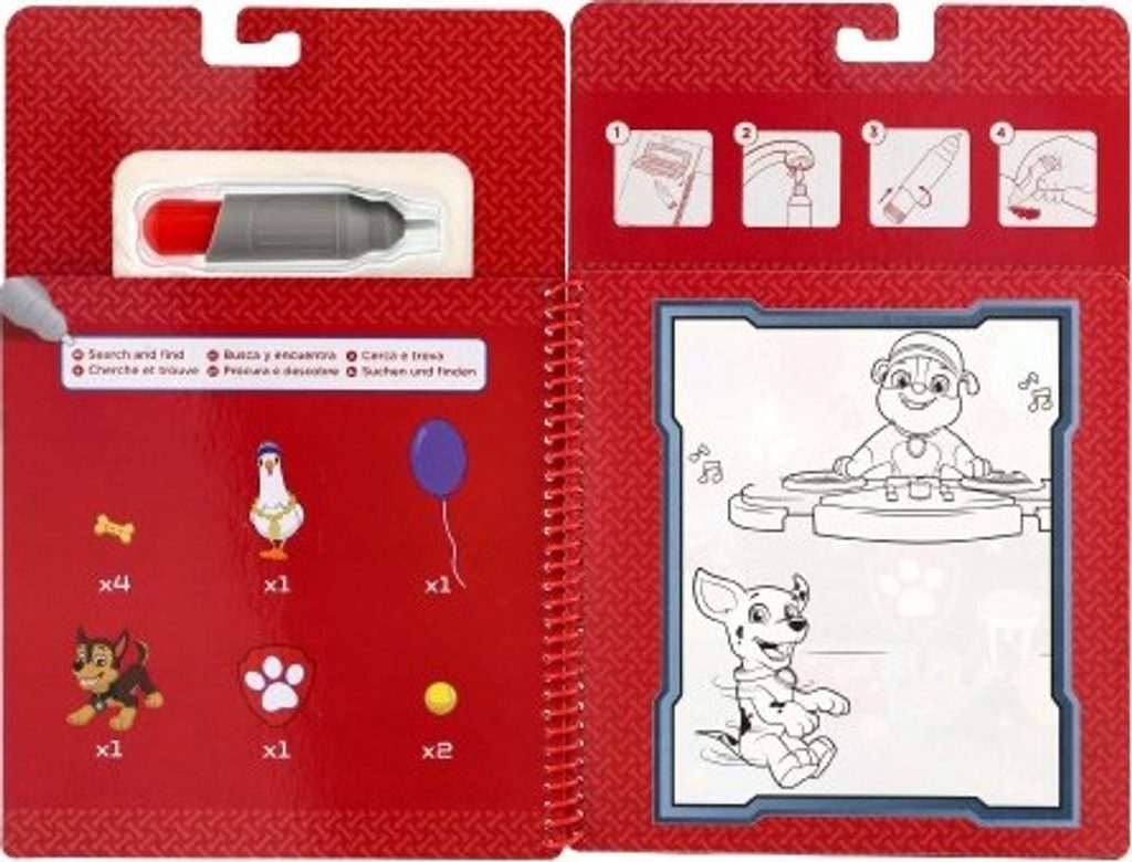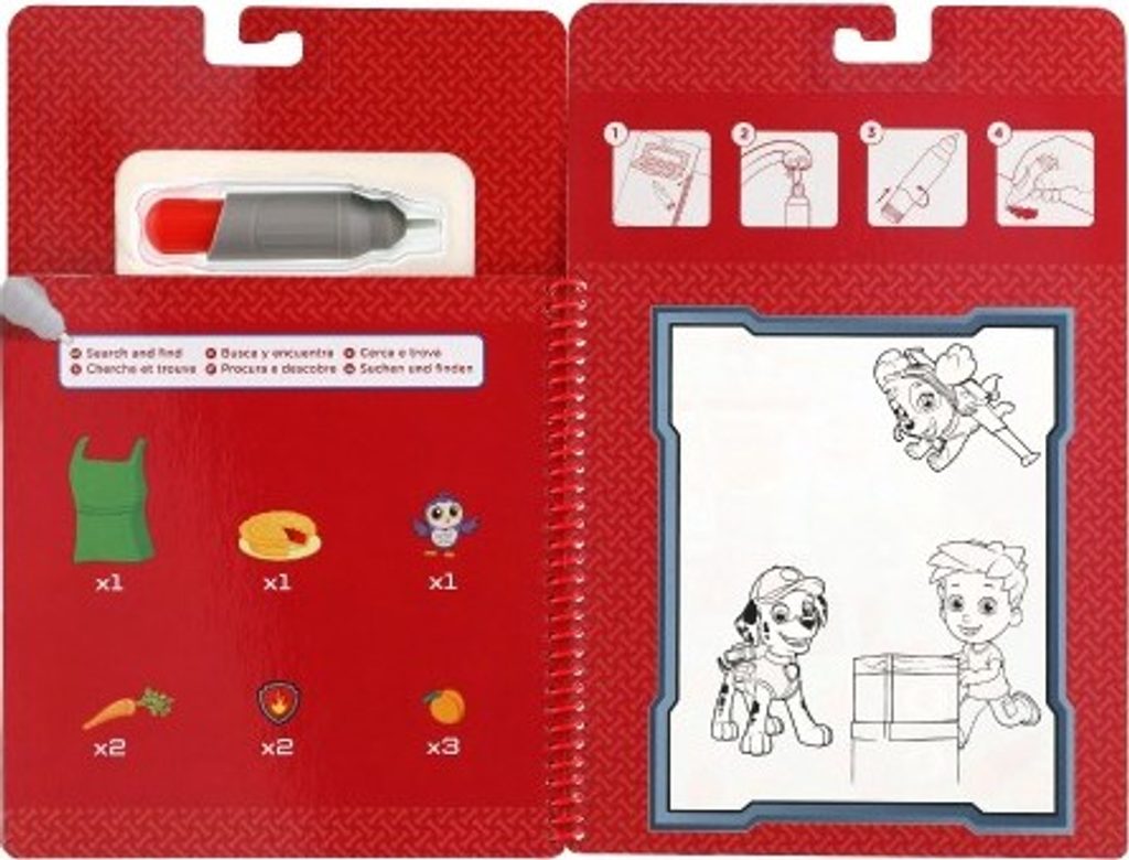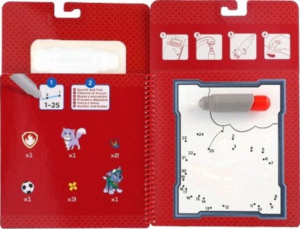 Kouzlení vodou Tlapkova patrola Marshall - Čisté malování! Tyto "vodní" omalovánky obsahují čtyři znovupoužitelné stránky a znovuplnitelné vodní pero. Použijte vodní pero, jehož tahy se zobrazí na jednotlivých obrázcích. Potom nechte stránku usušit a obrázek opět zmizí a znovu po navlhčení objeví. Vodní pero se snadno drží a vkládá se do úložné schránky na přední straně omalovánky, což činí Water WOW praktickou omalovánkou i pro cestování.