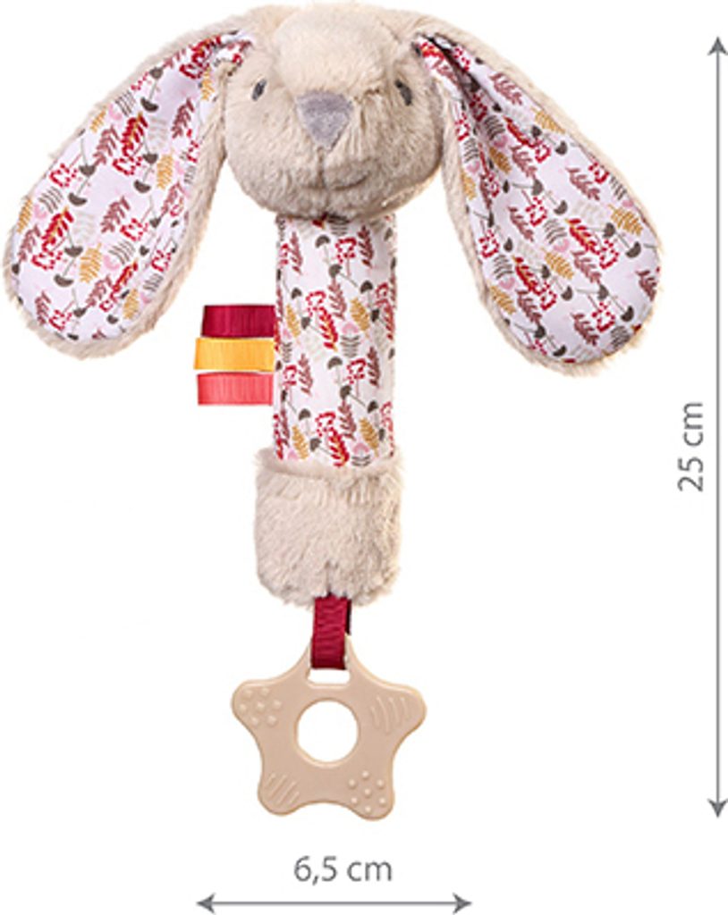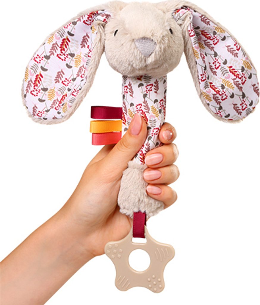 Pískací hračky pro miminka jsou pro děti skvělou zábavou. Tento plyšák chrastí a přitahuje pozornost různými barvami a texturami materiálů. Zajíček vám umožní tahat za jeho hebká ouška a dotýkat se ho, jak chce. Pozornost miminka upoutají šustivé zvuky uvnitř uší – poskytují další zvukové a hmatové vjemy.