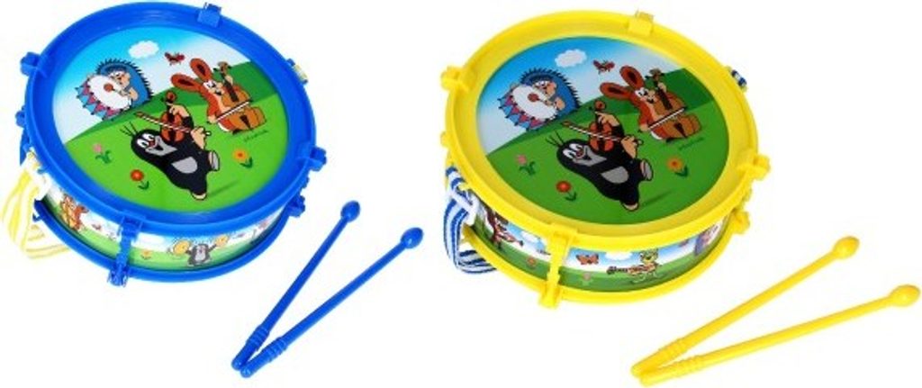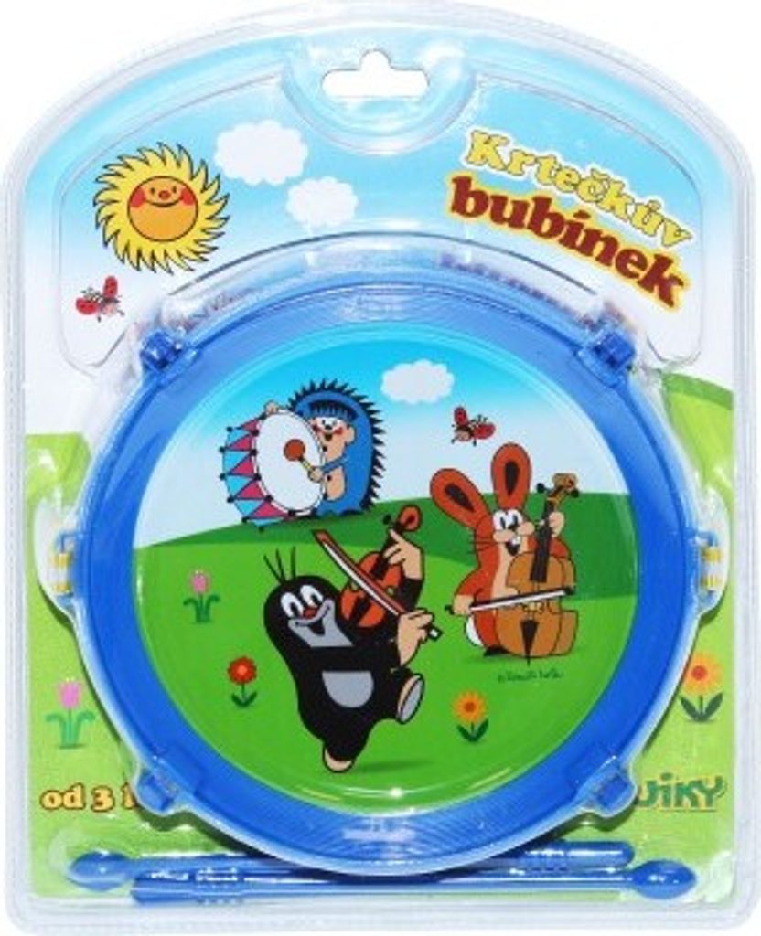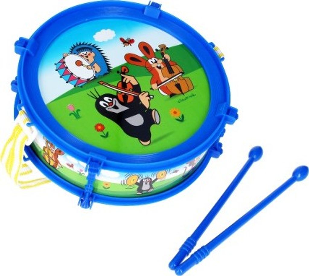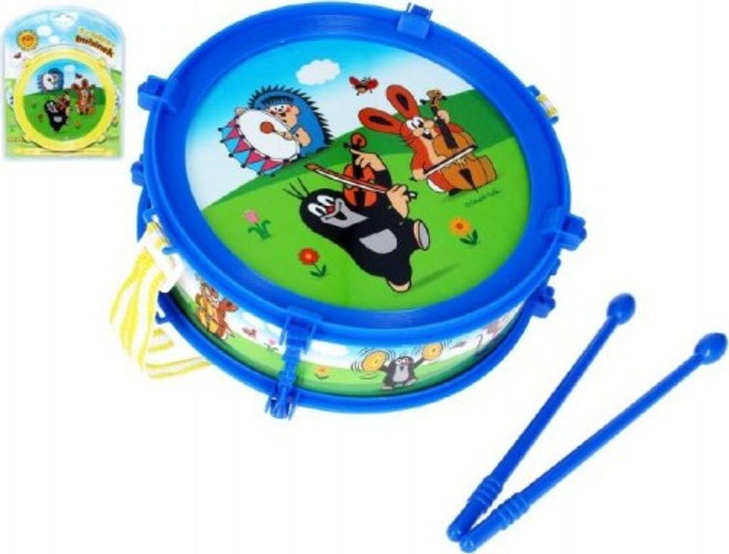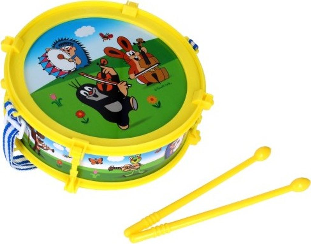 Bubínek pro malé bubeníčky s motivem oblíbených dětských hrdinů Krtečka a kamarádů. Nejjednodušší hudební nástroj, jehož ovládání zvládne každé dítě. I ty menší. Stačí vzít paličky do rukou a začít bubnovat na dětský bubínek. Tento bubínek je s popruhem.
