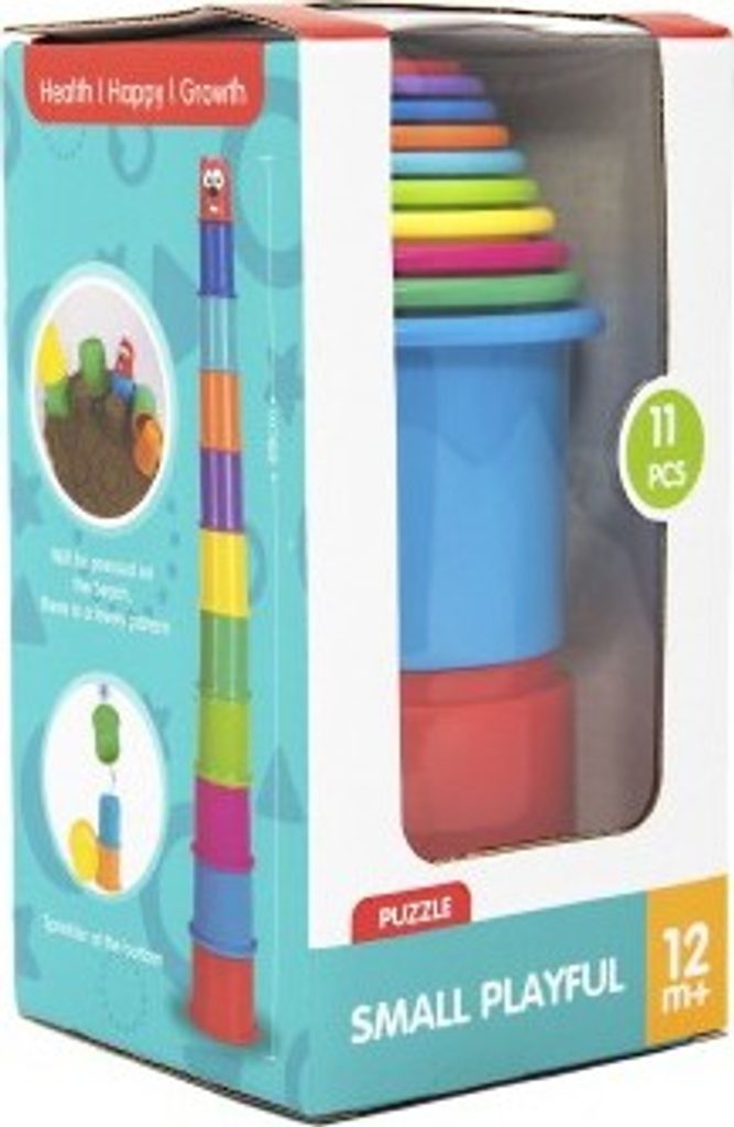 Ze stohovacích kalíšků lze postavit vysokou věž. Kubus obsahuje 11 dílů různých barev, které do sebe zapadají. Jednoduché klasické hry vám zajistí hodiny interaktivní zábavy. Stimulují smysly vašeho dítěte a povzbuzují koordinaci.