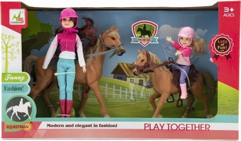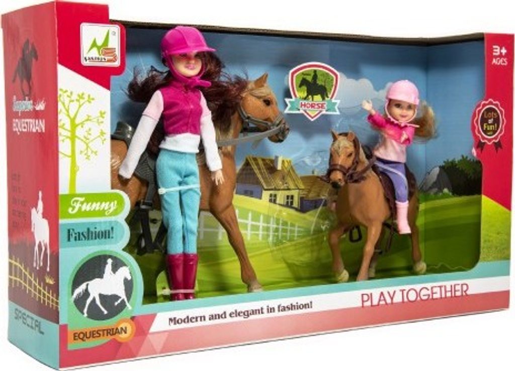 Nádherná sada pro malé milovnice koní. Žokejkám nechybí jezdecké oblečení ani helma. Hříva ani ocas nejsou česací. Vyrobeno z kvalitních a odolných materiálů. Doplňte si farmu o nové koníky i s jezdkyněmi.