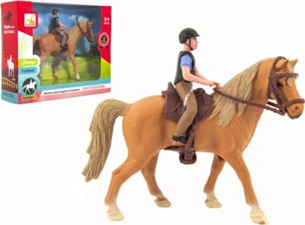 Všechny malé milovníky koní potěší žokej s koníkem s uzdou a sedlem. Žokej musí mít jezdecké oblečení a helmu. Hříva koně není česací. Vyrobeno z kvalitních a odolných materiálů.