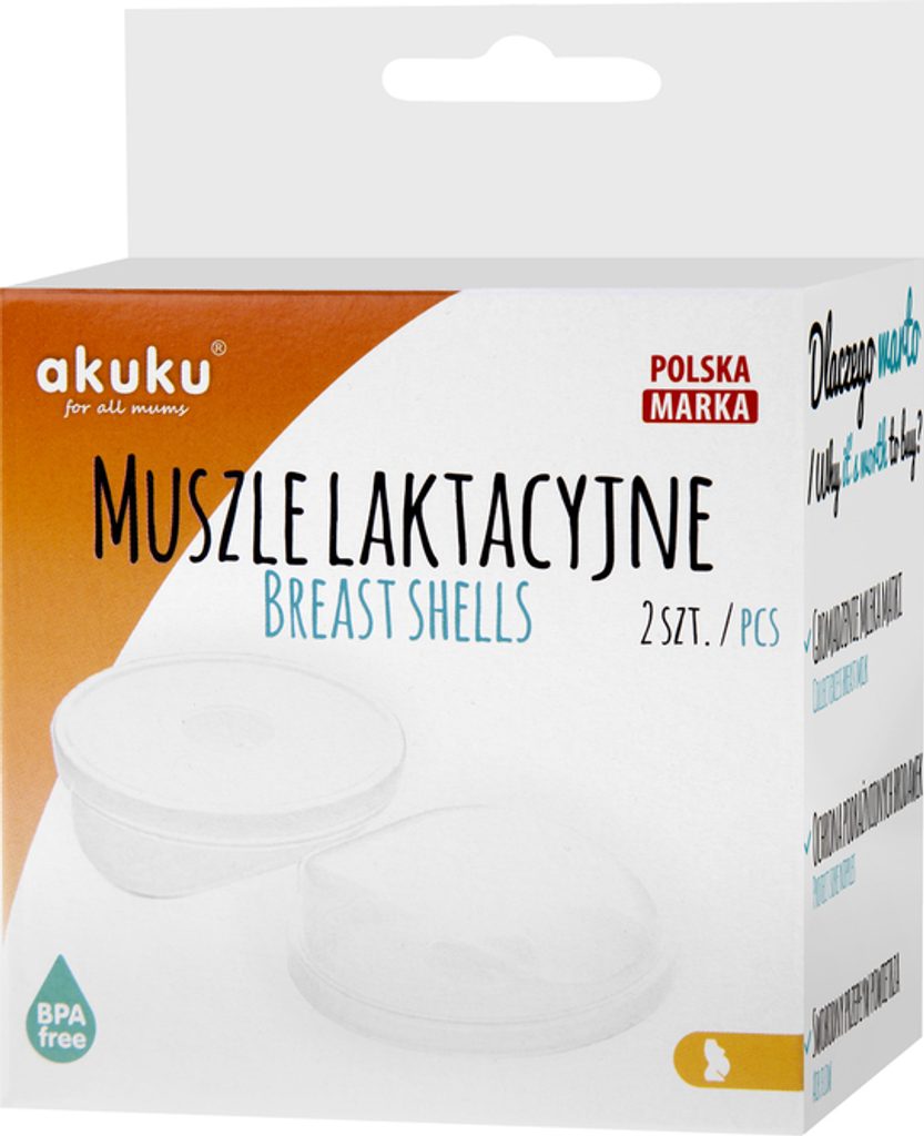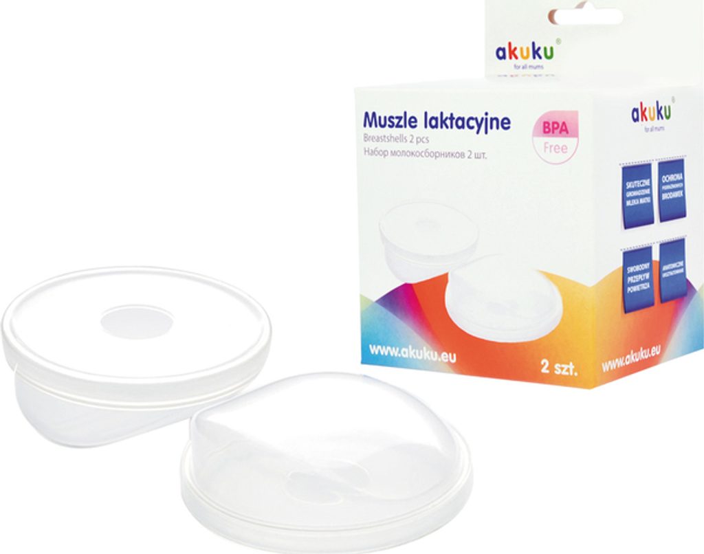 Laktační mušle Akuku 2 ks. Slouží k zachycení přebytečného mateřského mléka, zabraňují vzniku otoku a snižují nalévání prsou. Bez BPA. Balení 2 ks.