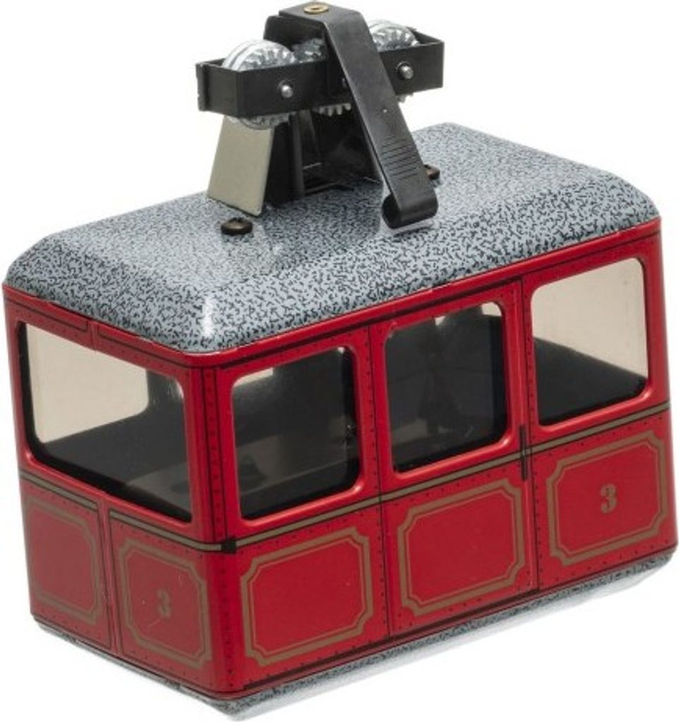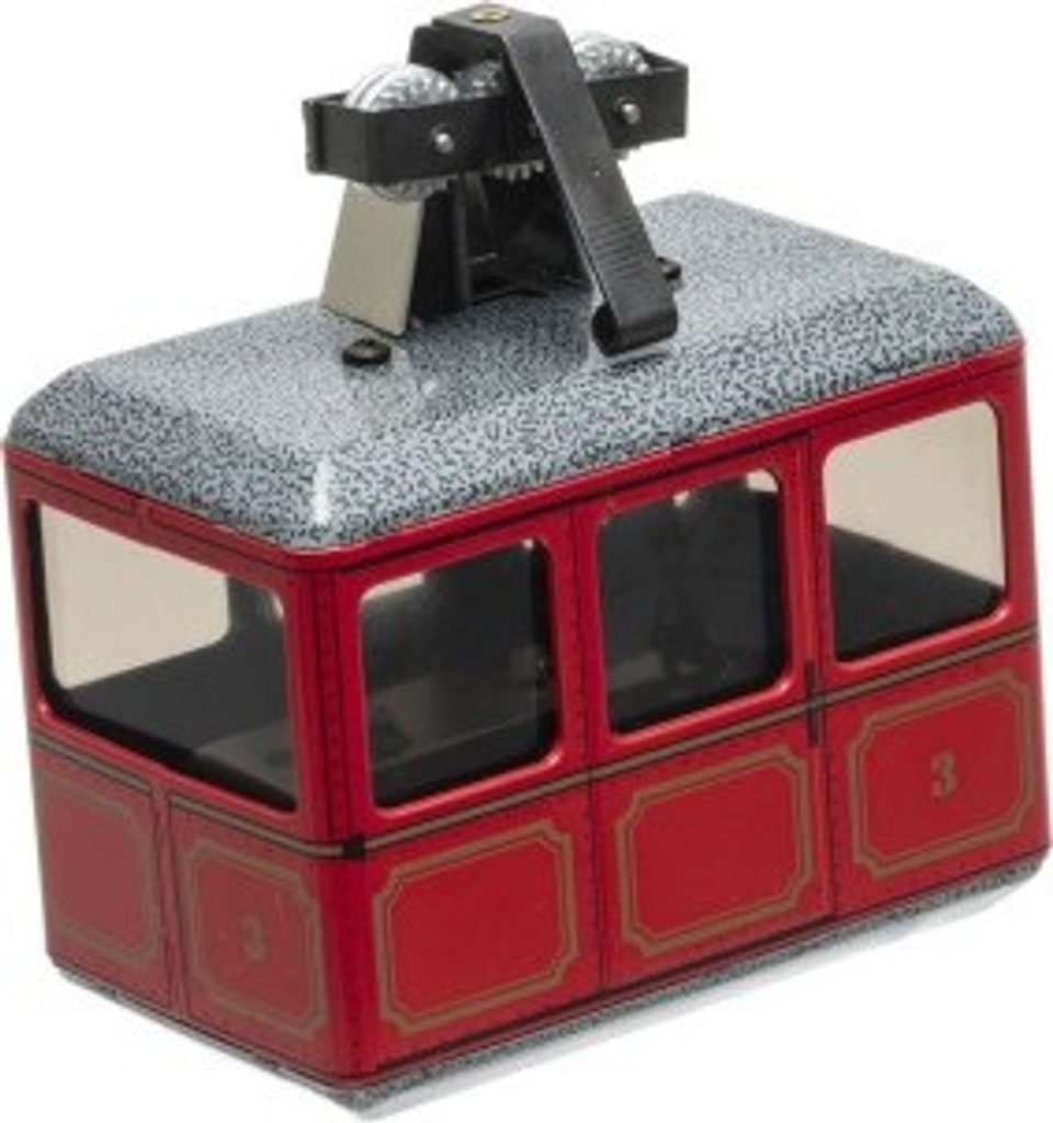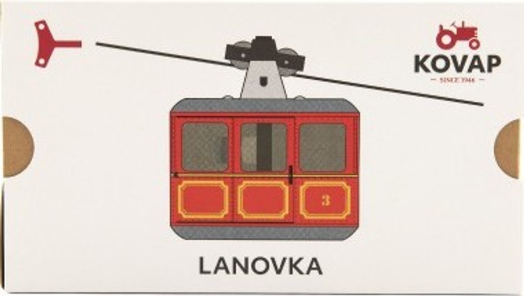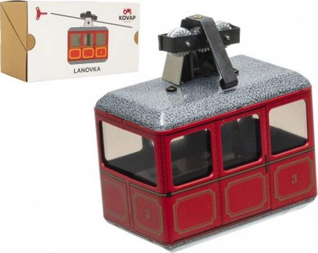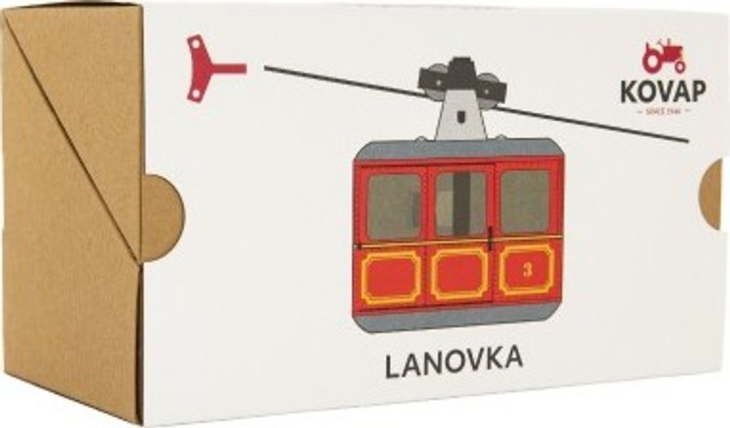 Originální hračka – model lanovky na klíček, který dokáže jezdit po provázku. Ujede asi 4 metry s maximálním převýšením 0,5 metru. Provázek je součástí balení. Pohon lanovky zajišťuje pérový strojek na klíček, který je vybaven brzdou, která spouští nebo zastavuje pohyb lanovky po provázku.
