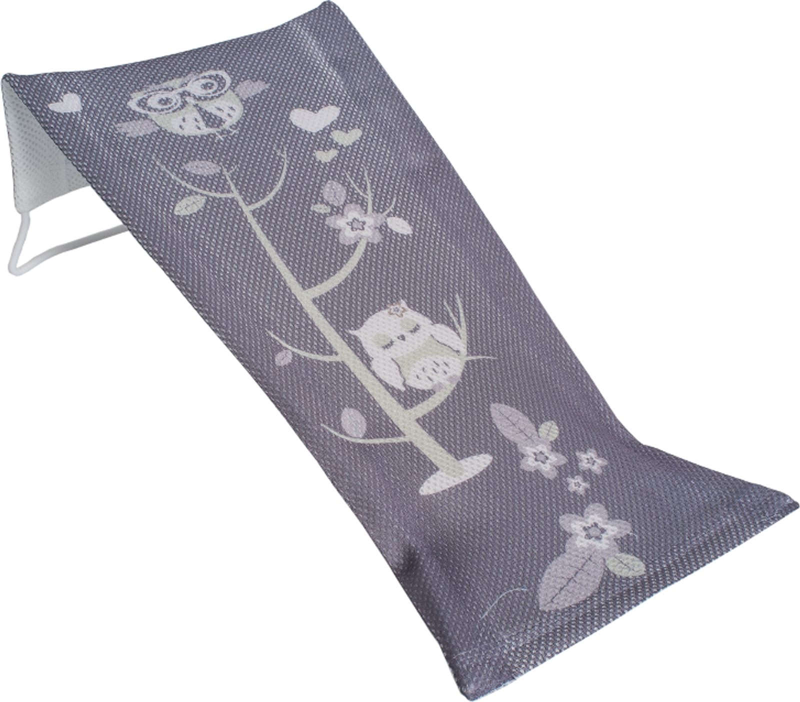 Látkové lehátko do vaničky s obrázkem sovy. Moderní design, kvalitní zpracování, jednoduchá údržba, to vše lehátko nabízí. Je to velmi praktický pomocník v péči o miminko. Materiál: ocelový rám, textilní potah. Na rám je vypnut textilní potah, který se dá jednoduše stáhnout a vyprat v pračce. Rozměr: dxš cca 42x20 cm.