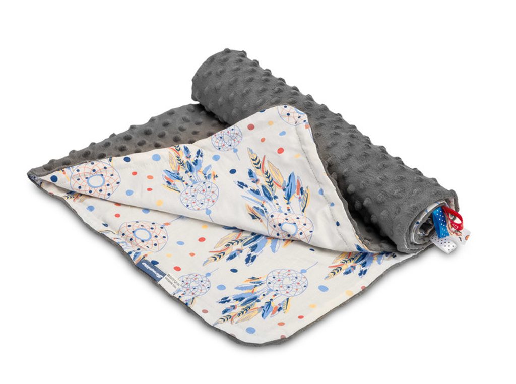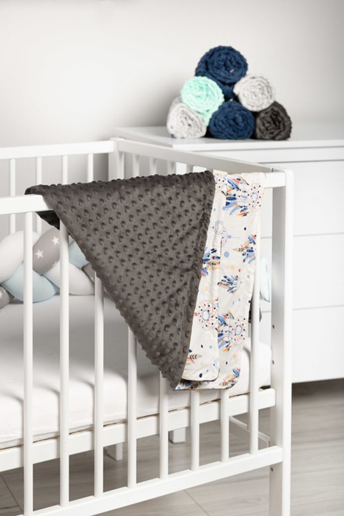 Lehká deka Minky je perfektním řešením na jarní a letní procházky. Vyrobeno z jemné bavlny a jemné minky tkaniny, v závislosti na potřebách lze použít oboustranně . Každý vzor deky má jiný barevný potisk . Na dece jsou také barevné stuhy , které zaujmou každé miminko. Univerzální lehká deka do kočárku nebo postýlky o rozměru 75×100 cm.