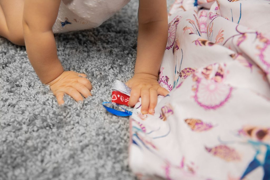 - na deku dáváme barevné stuhy, které zaujmou každé miminko