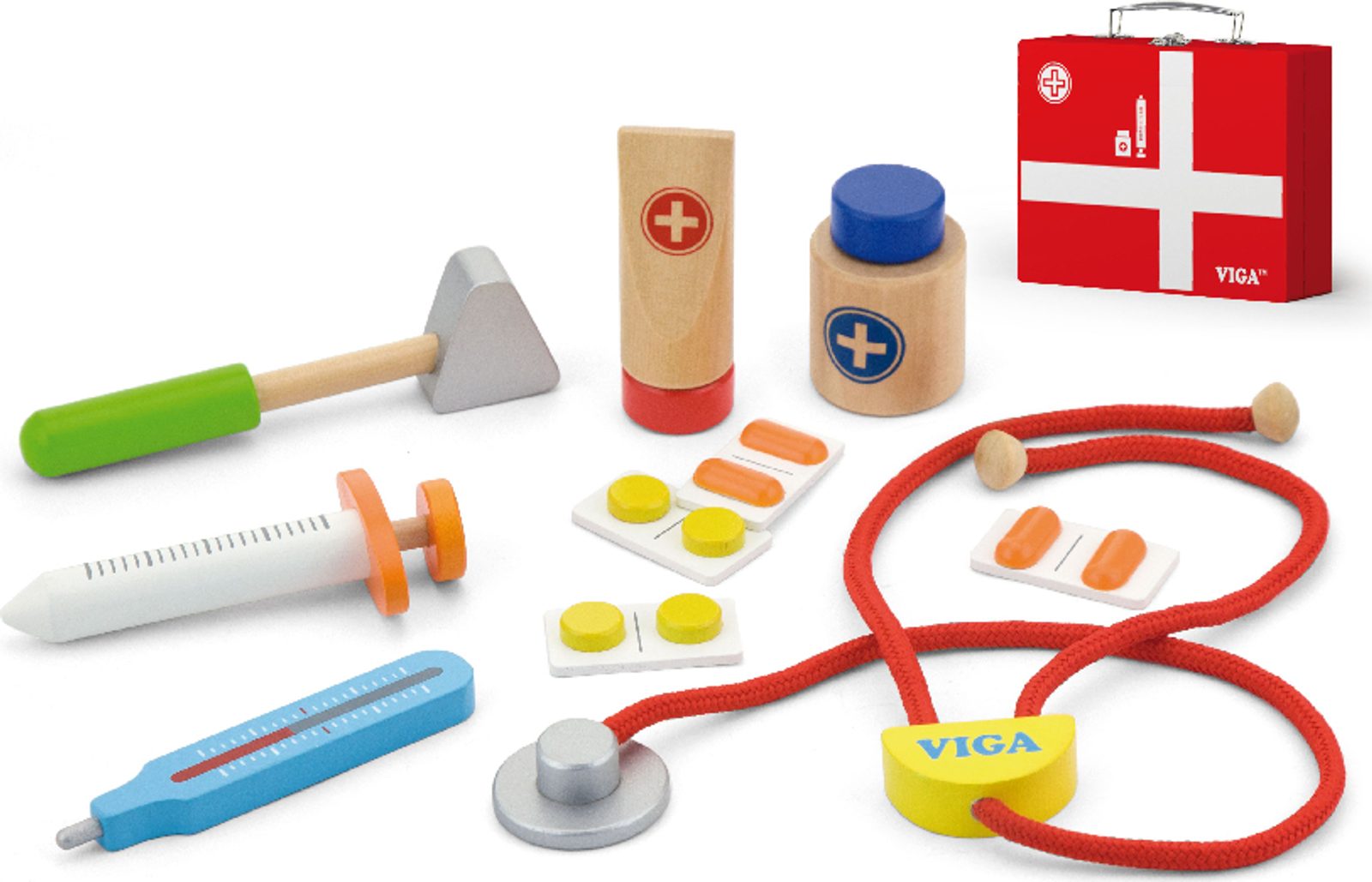 Něco nového pro děti.... Sada pro malé zdravotníky... Každý si někdy hrál na lékaře... Dopřejme i našim nejmenším výlet do říše fantazie. Nechte je vytvořit si vlastní nemocnici, kde Medvídek a jejich oblíbená panenka potřebují pomoc lékaře. Když je bolí bříško nebo mají odřené koleno..... Skvělá sada pro hru na doktora zabalená v kufříku, který si můžete vzít kamkoli - k babičce, na dovolenou. Dítě bude při hře rozvíjet svou emoční inteligenci. Pomůže jim překonat strach ze stříkaček a pochopit, že i hořký sirup je pro jejich zdraví.