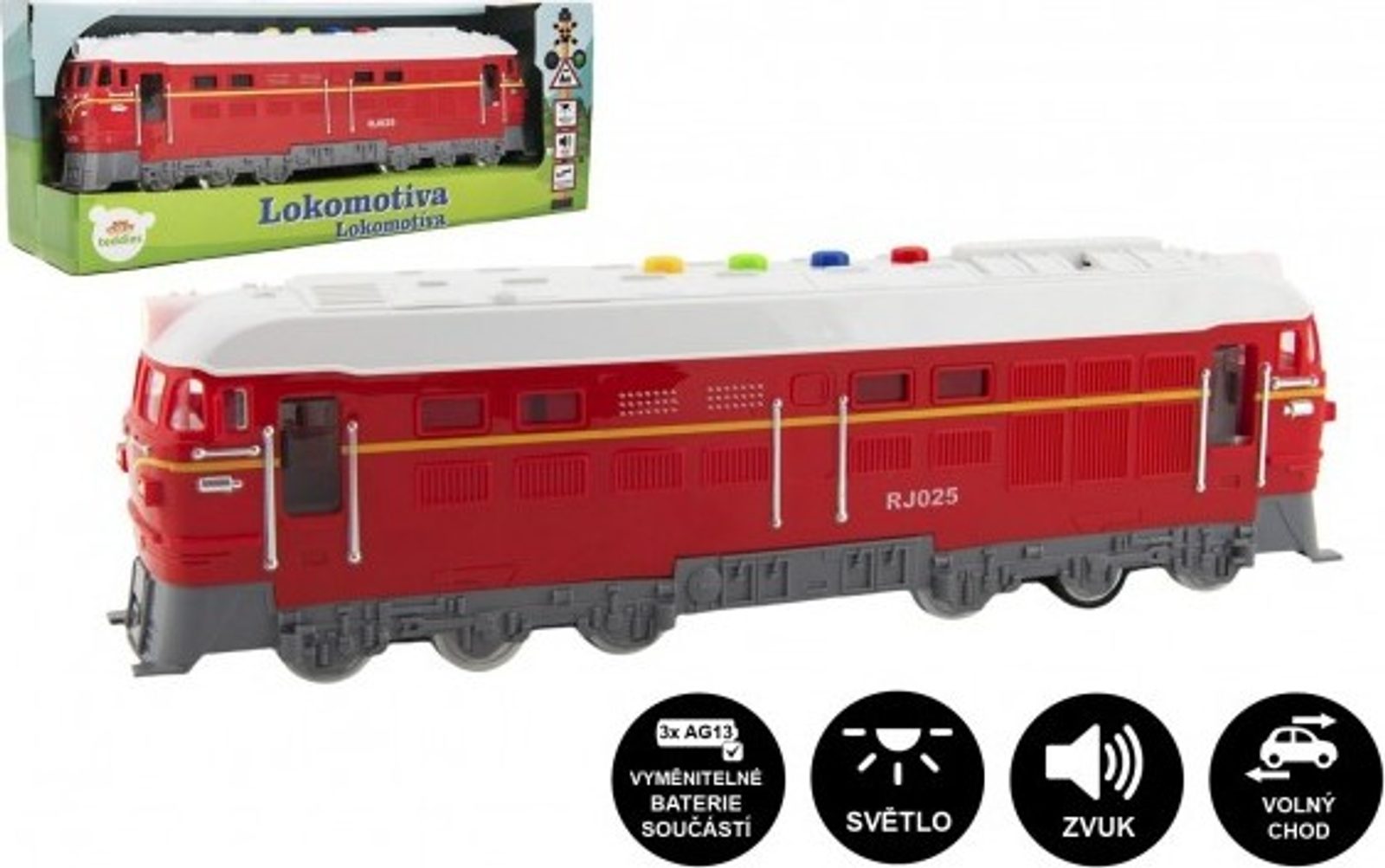 Krásná lokomotiva červené barvy vyrobená z plastu je velikosti 35 cm. Baterie 3x AAA jsou součástí výrobku. Vlak vydává klasické zvuky mašiny. Skvělý tip na dárek pro malé strojvedoucí. Mašina je na setrvačník.