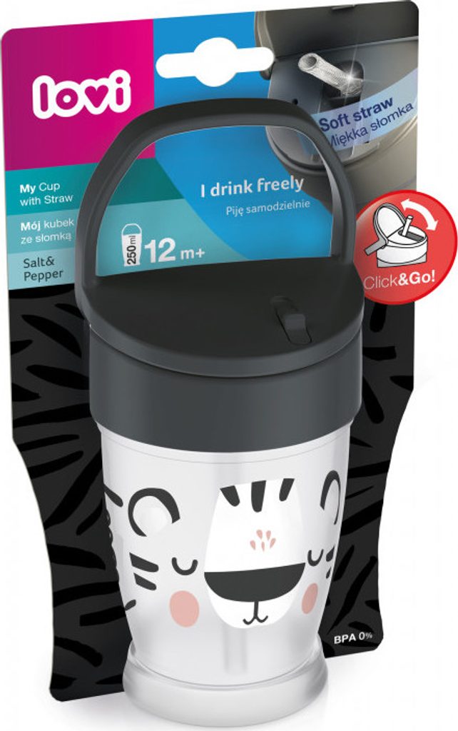 Hrnek LOVI s brčkem JUNIOR 250 ml je produkt věnovaný především mladším dětem. Tento produkt se vyznačuje pevným a především těsným Click & GO uzávěrem. Tento typ uzávěru zabrání vylití nápoje. Další výhodou hrnku LOVI JUNIOR s brčkem je pohodlné ouško. Umožní vašemu batoleti vzít si hrnek, kam chce. To, co tento produkt odlišuje od ostatních, je rozhodně jemné brčko. Logopedi uvádějí, že takové řešení může pozitivně ovlivnit vývoj dutiny ústní, řečového aparátu a dýchacího ústrojí, zejména u dětí ve věku 10-12 měsíců.