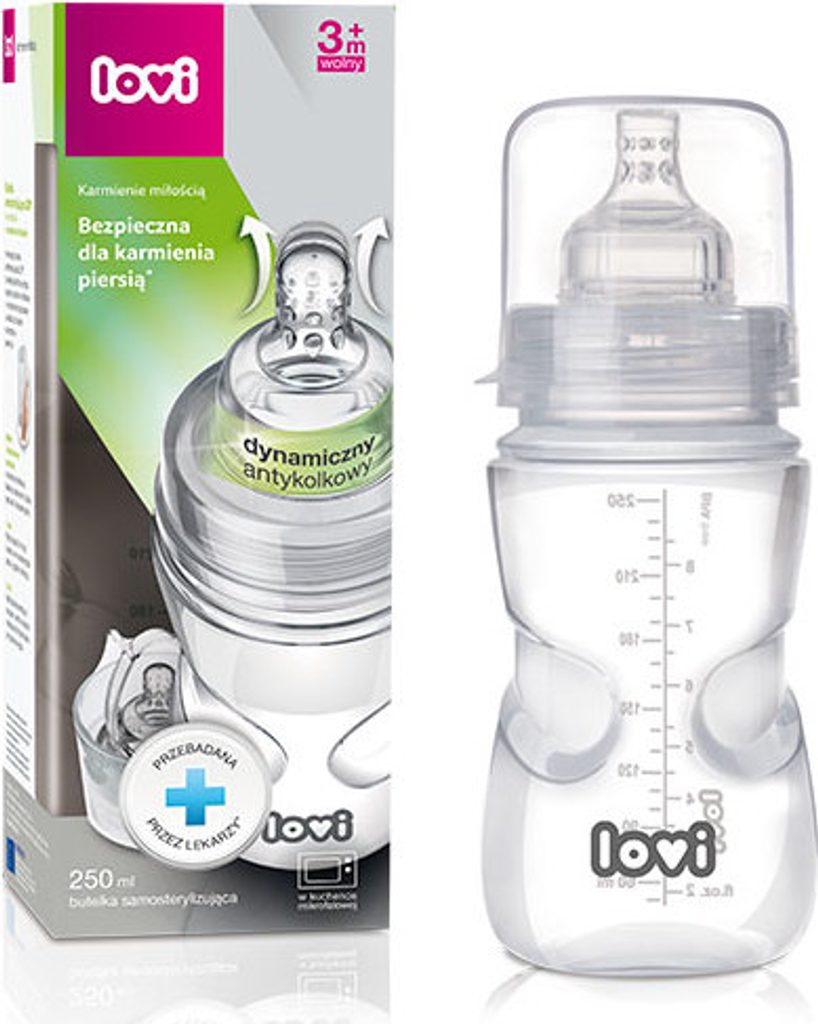 Jediná láhev, která povzbuzuje dítě k aktivní činnosti během sání. Obsahuje dynamický silikonový dudlík Lovi, který při krmení modifikuje svůj tvar (prodlužuje se). Povzbuzuje dítě k aktivní činnosti během sání, stejně jako u kojení, stimuluje místa, která se podílí na rozvoji mluvy a pozitivně ovlivňuje správný vývoj celé dutiny ústní. Speciálně profilovaný tvar láhve umožňuje správný způsob držení. V průběhu krmení se tak láhev pohybuje shodně s rytmem a silou sání dítěte. Láhev obsahuje elastický těsnící disk, který vytvoří z láhve praktický zásobník na uchovávání pokrmu a víčko/hrníček s odměrkou.