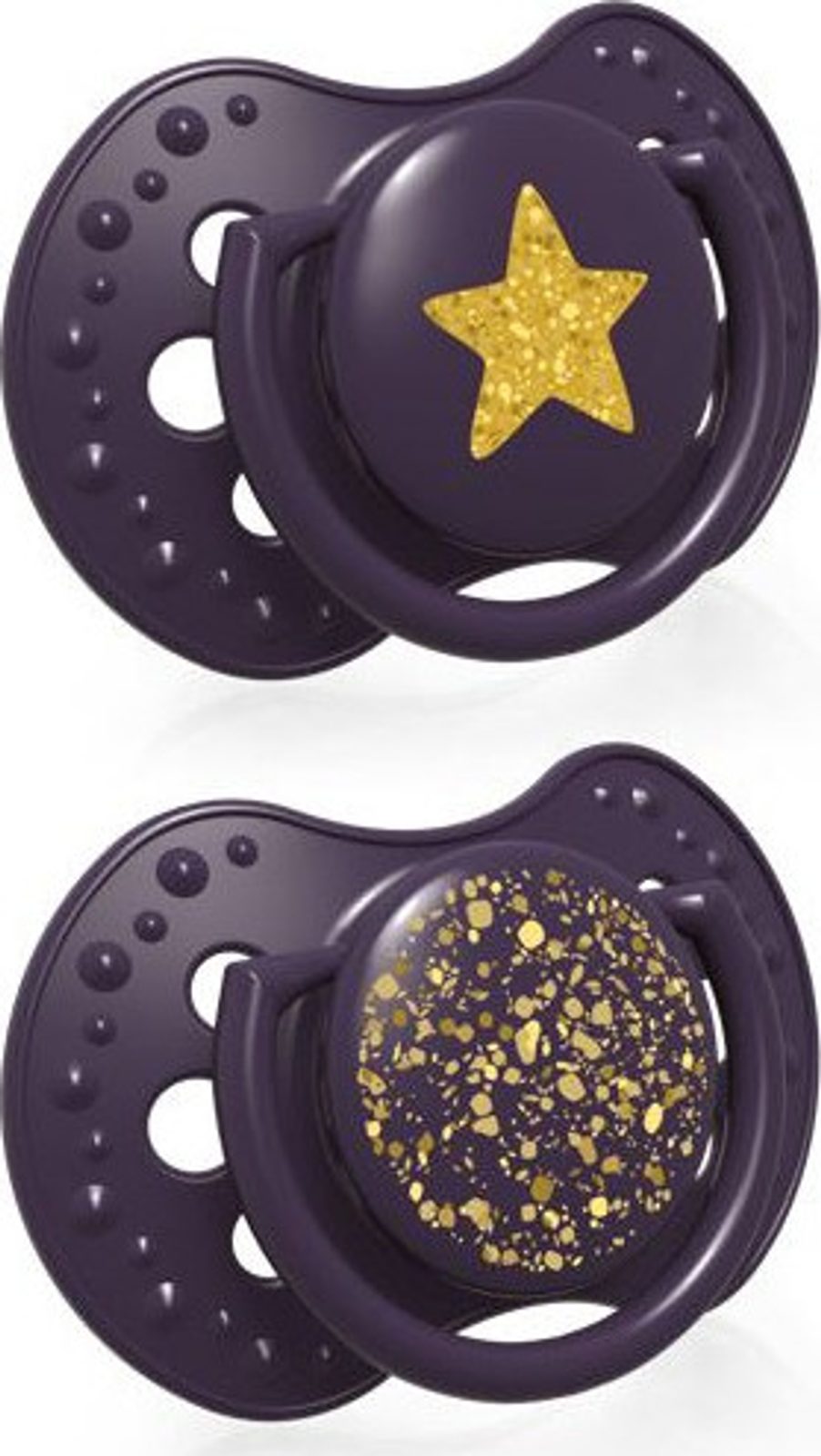 Lovi Silikonové dynamické dudlíky 6-18m, Stardust - fialové