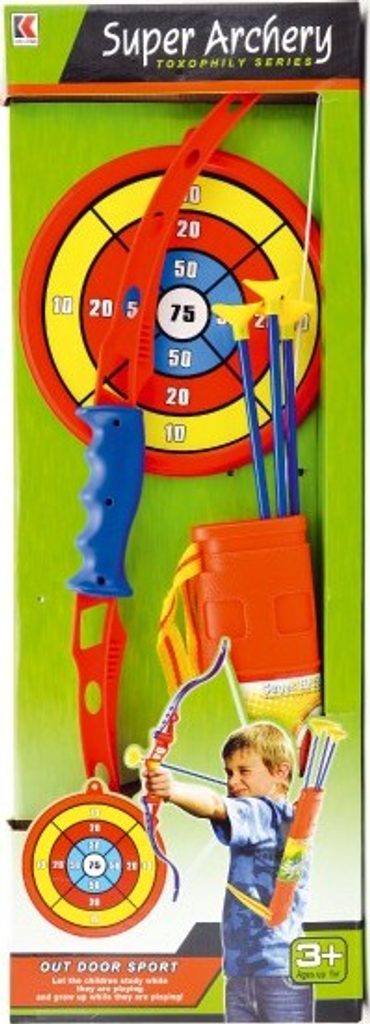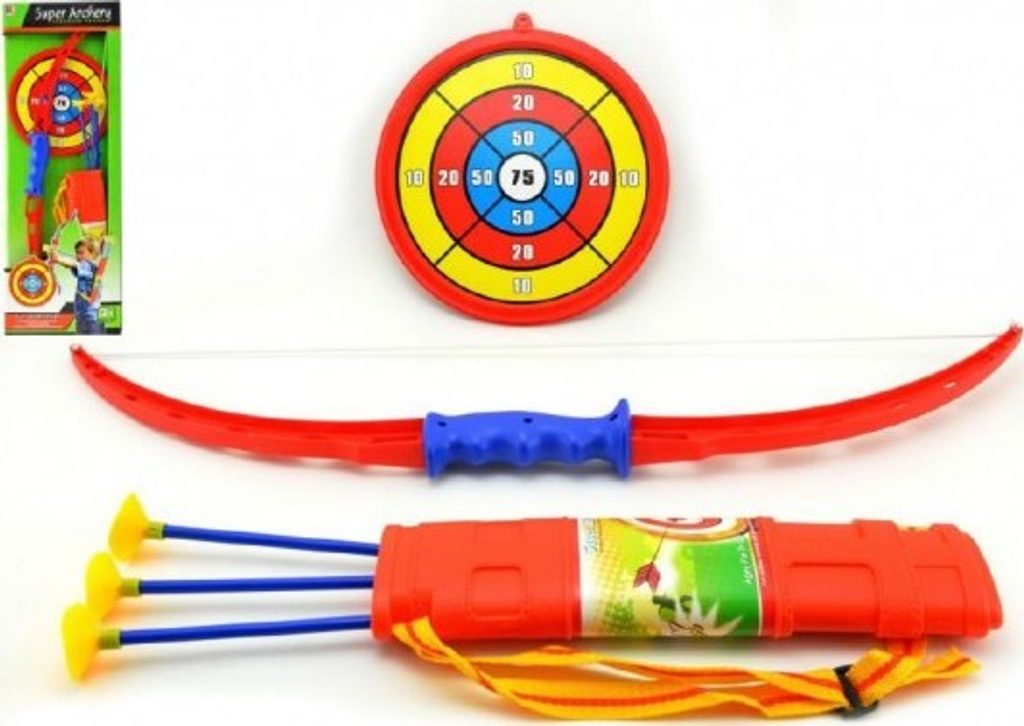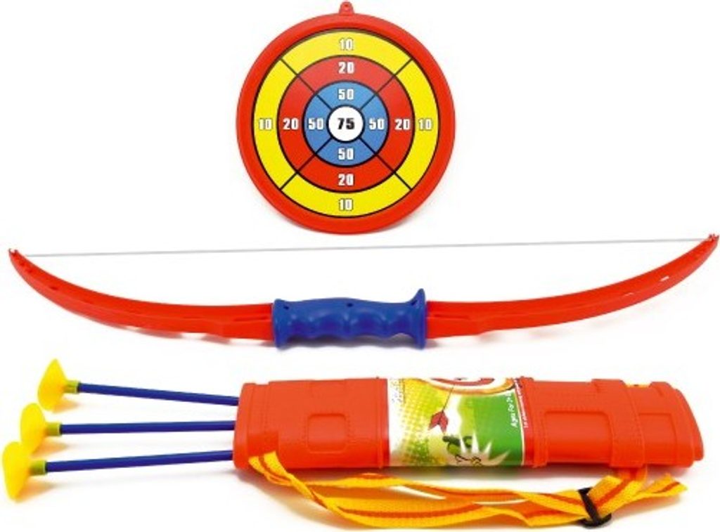 Plastový set s lukem, šípy a terčem určený pro malé střelce, kteří střílí se šípy zakončenými přísavkou na připravený terč. Střelba je tak pro děti bezpečná. Po ukončení střílení lze šípy složit do toulce, který má nastavitelný popruh pro snadné přenášení. Vhodné od 3 let.