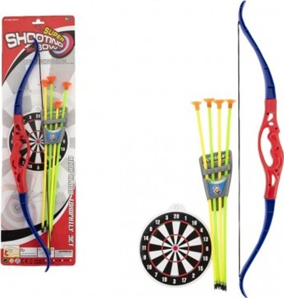 Plastový set s lukem, šípy a terčem určený pro malé střelce, kteří střílí se…