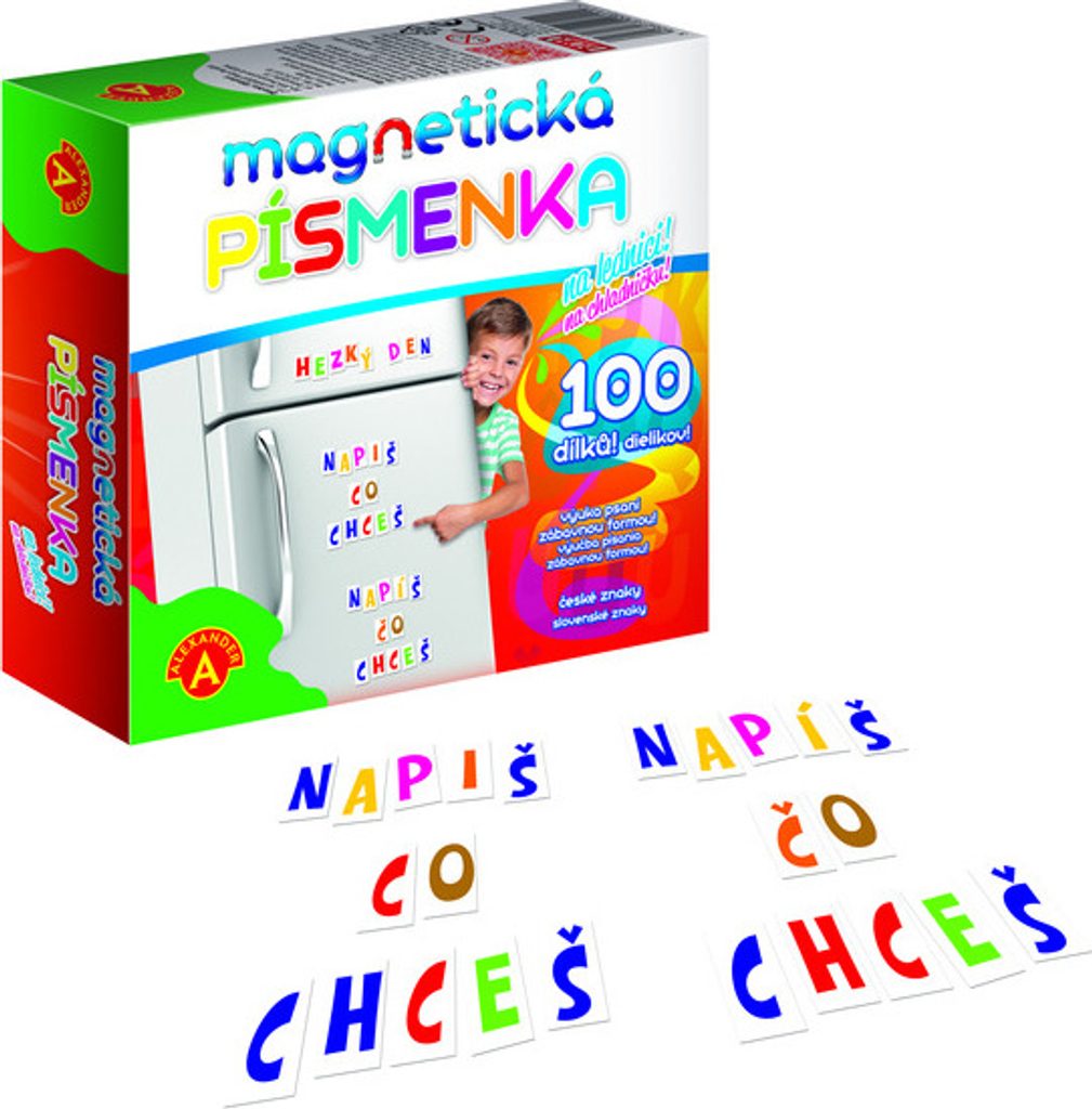 Vítá Vás svět "kouzelných" magnetických písmenek. Magnetická písmenka Alexander se dají připevnit na lednici, pračku, myčku, školní tabuli nebo jakýkoliv jiný kovový povrch - dokonce i radiátor topení!