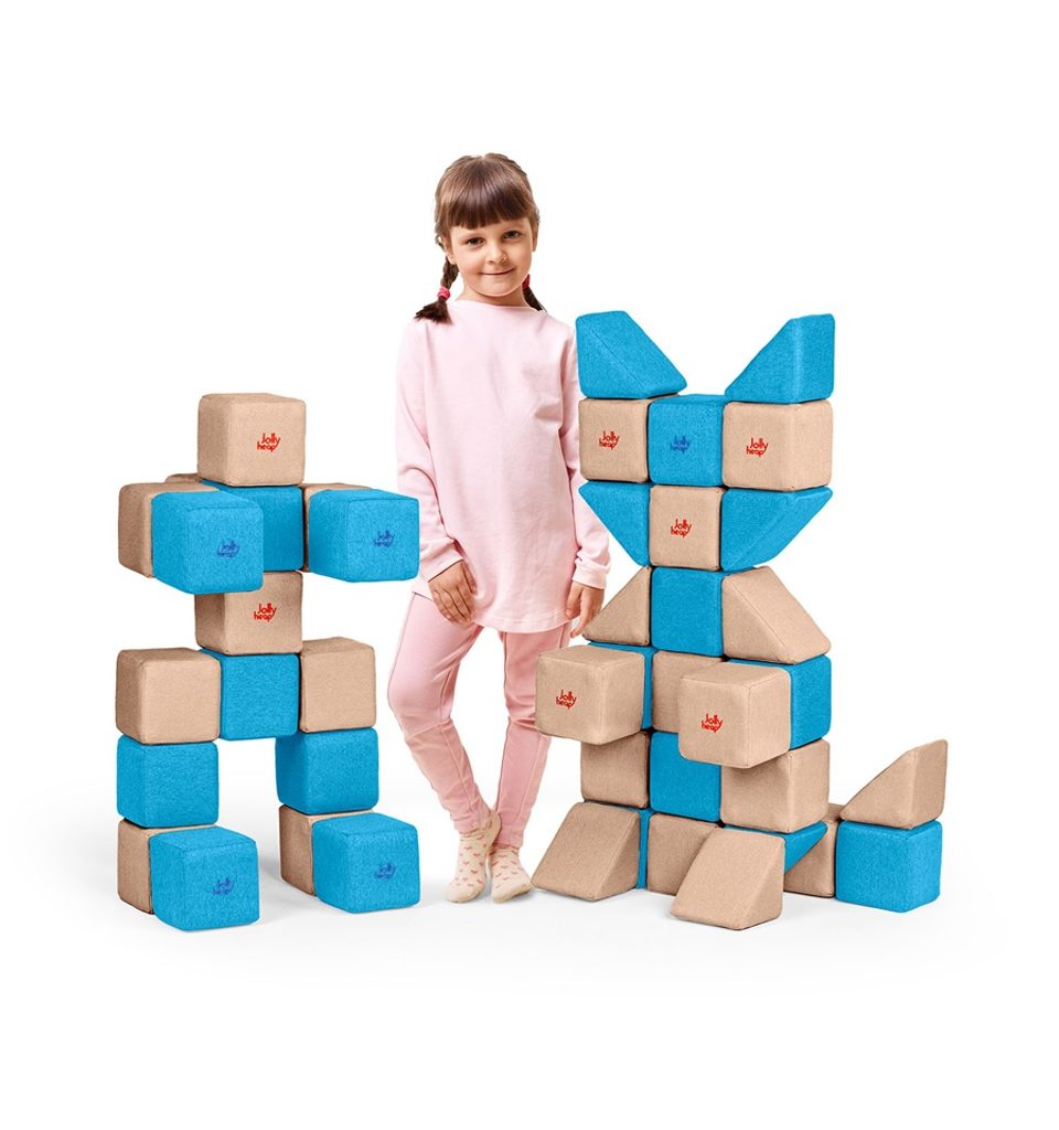 JollyHeap je jedinečná stavebnice z velkých měkkých kostek s bezpečně ukrytými magnety uvnitř.