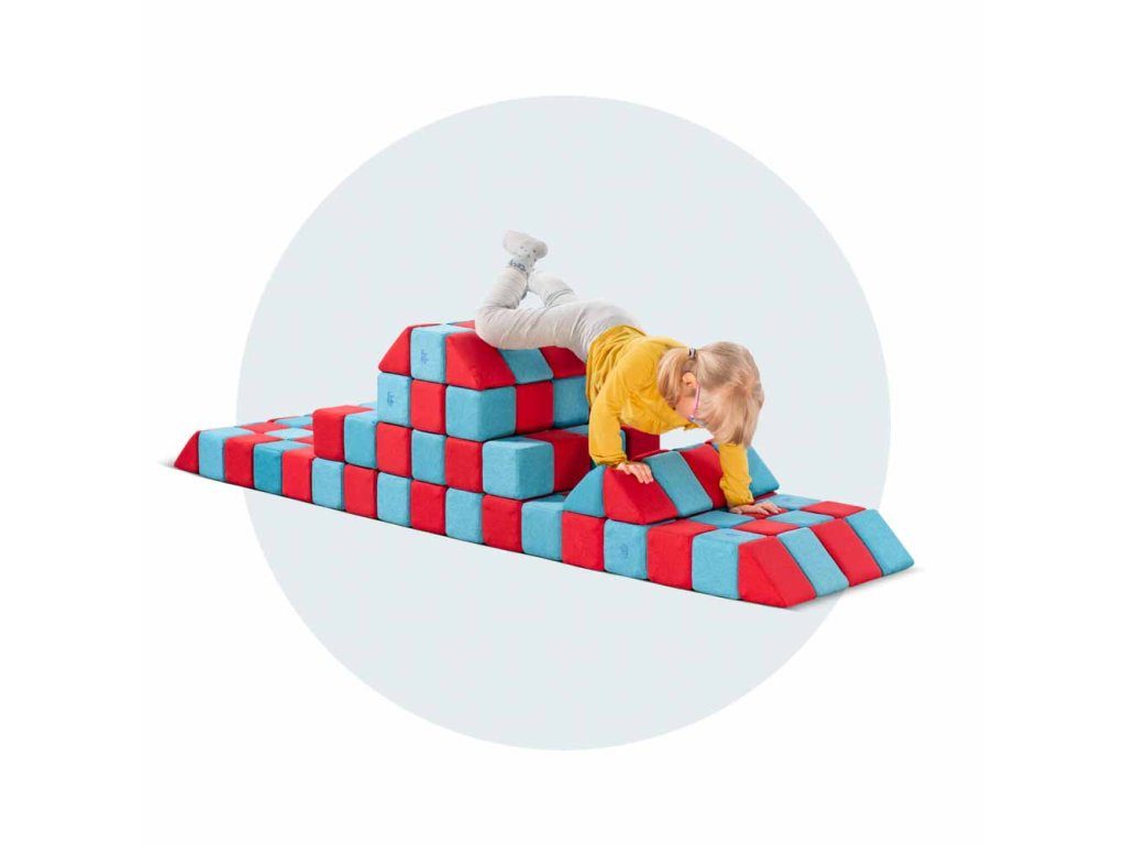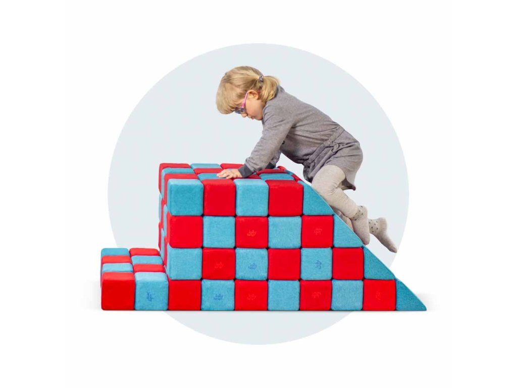 Díky nim se kostky snadno spojují a děti mohou vytvářet neomezené množství tvarů – od jednoduchých věží až po domečky, hrady, prolézačky či sedací nábytek.