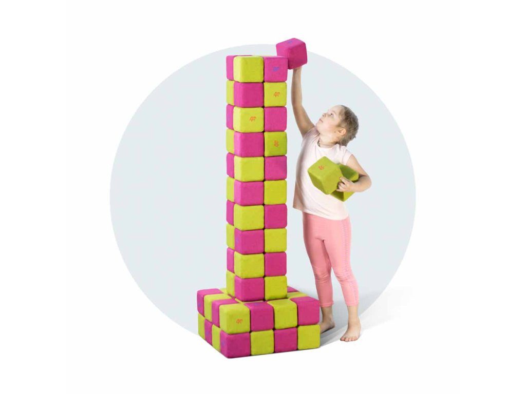 Kostky jsou dostatečně velké, aby se z nich daly stavět i celé hrací koutky nebo interaktivní hřiště přímo v pokojíčku.