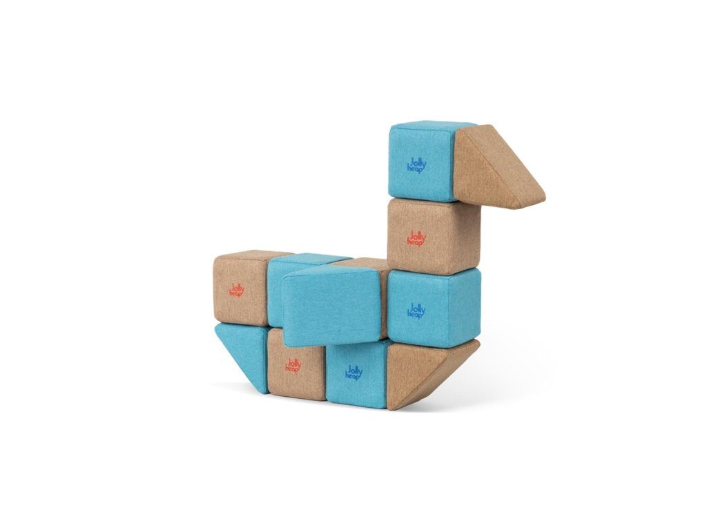 JollyHeap je jedinečná stavebnice z velkých měkkých kostek s bezpečně ukrytými magnety uvnitř.