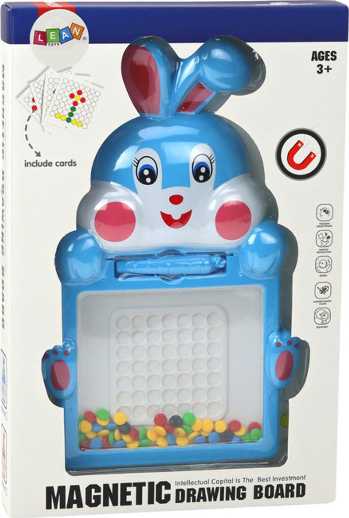 Magnetická tabule ve tvaru roztomilého modrého zajíce není jen tak obyčejná hračka - je to kouzelný zdroj inspirace a rozvoje pro vaše dítě. Tato jedinečná magnetická tabule nabízí neomezené možnosti pro malé umělce. Sada obsahuje barevné korálky v odstínech červené, žluté, zelené, modré a černé, které vás vybízejí k vytváření fantastických obrázků a vzorů.