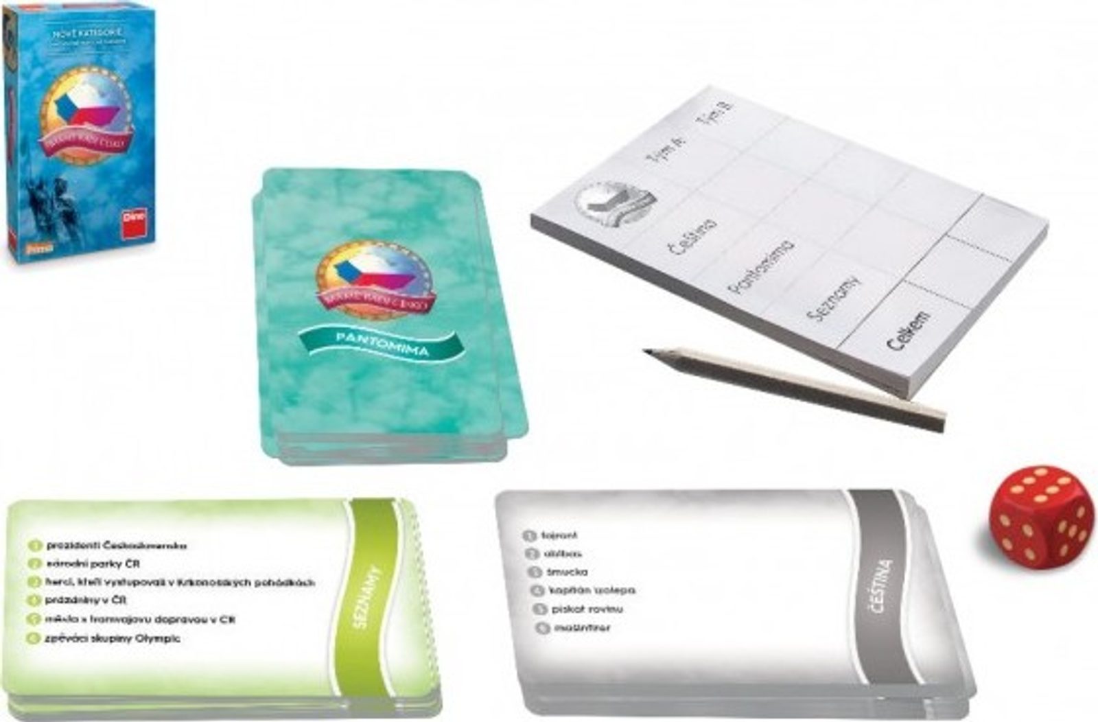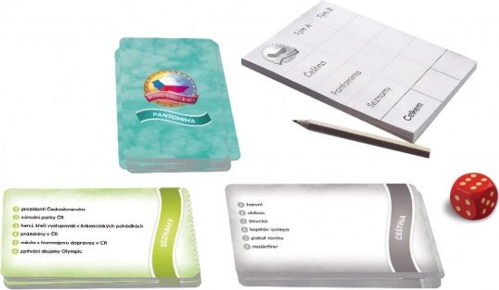 Hra obsahuje: 99 karet, 1 bloček, 1 tužku, 1 bodovou hrací kostku, pravidla.
