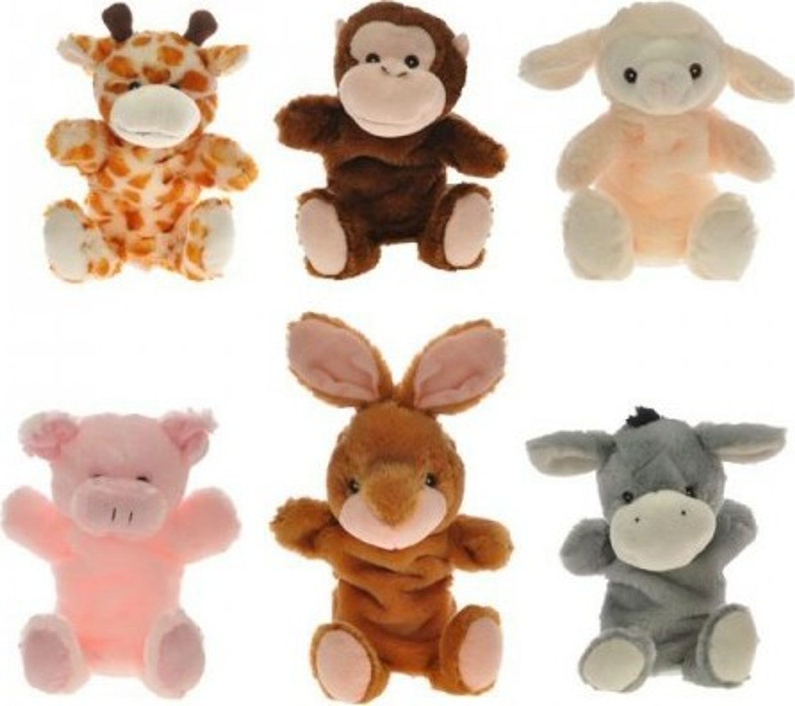 Žirafa, oslík, opice nebo králík jsou maňásci, kteří sedí pěkně dětem na ruku. Pružný materiál a vycpaná hlavička umožňuje dětem pěkně s vybraným maňáskem pohybovat.