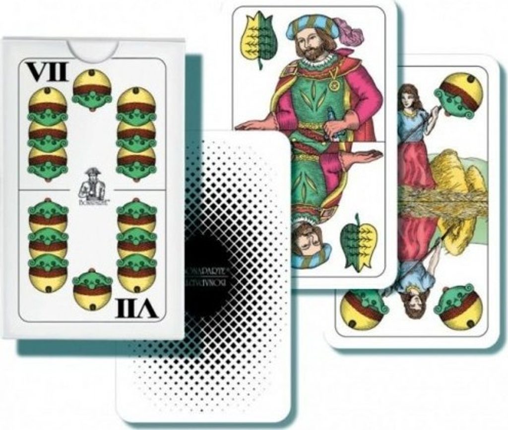 Klasická karetní hra. 32 listů, jednohlavé. V papírové krabičce.