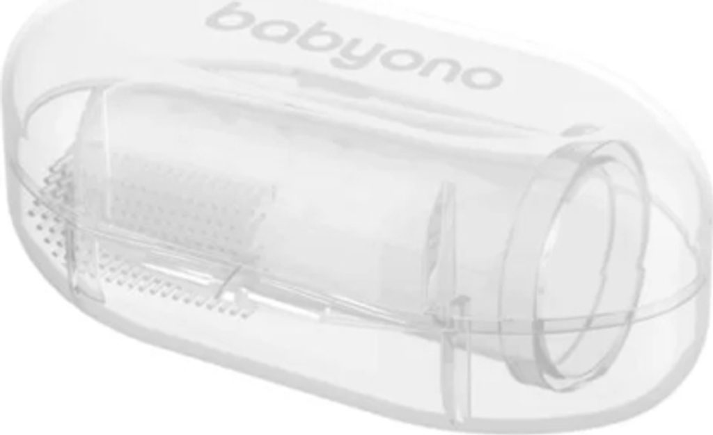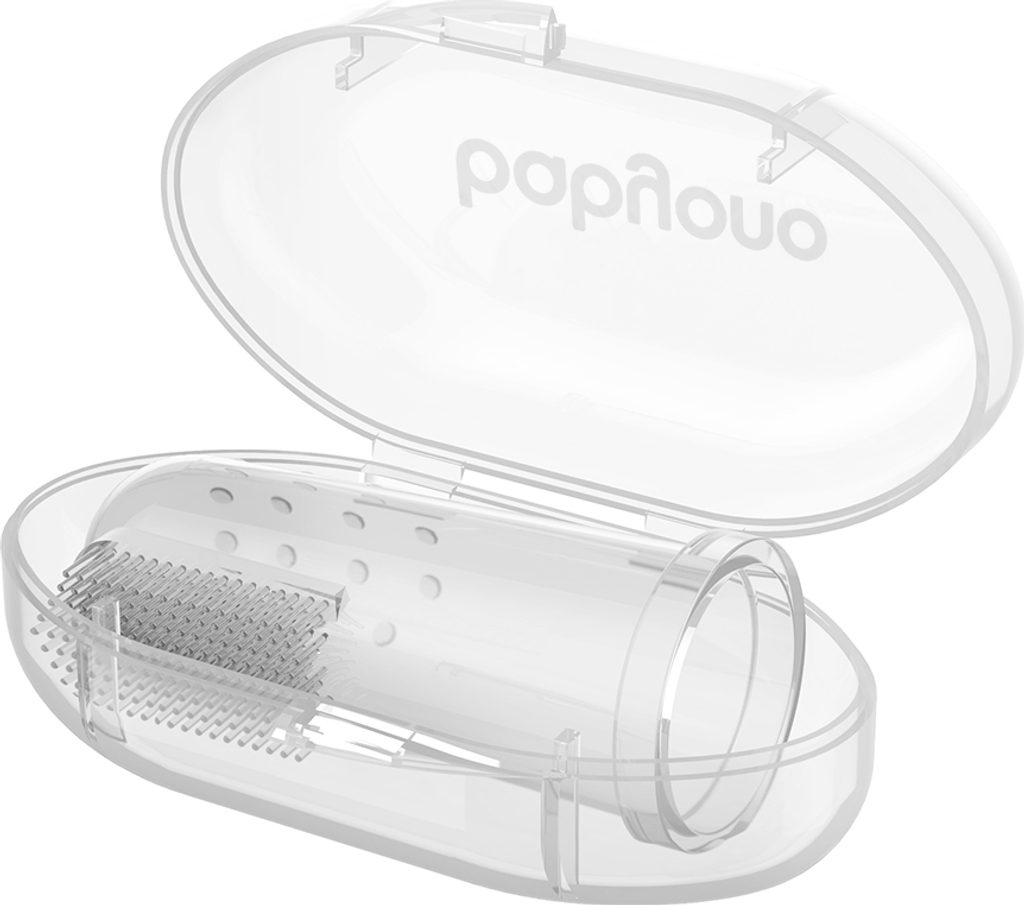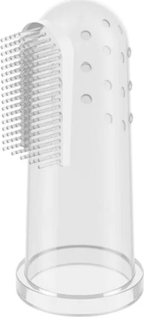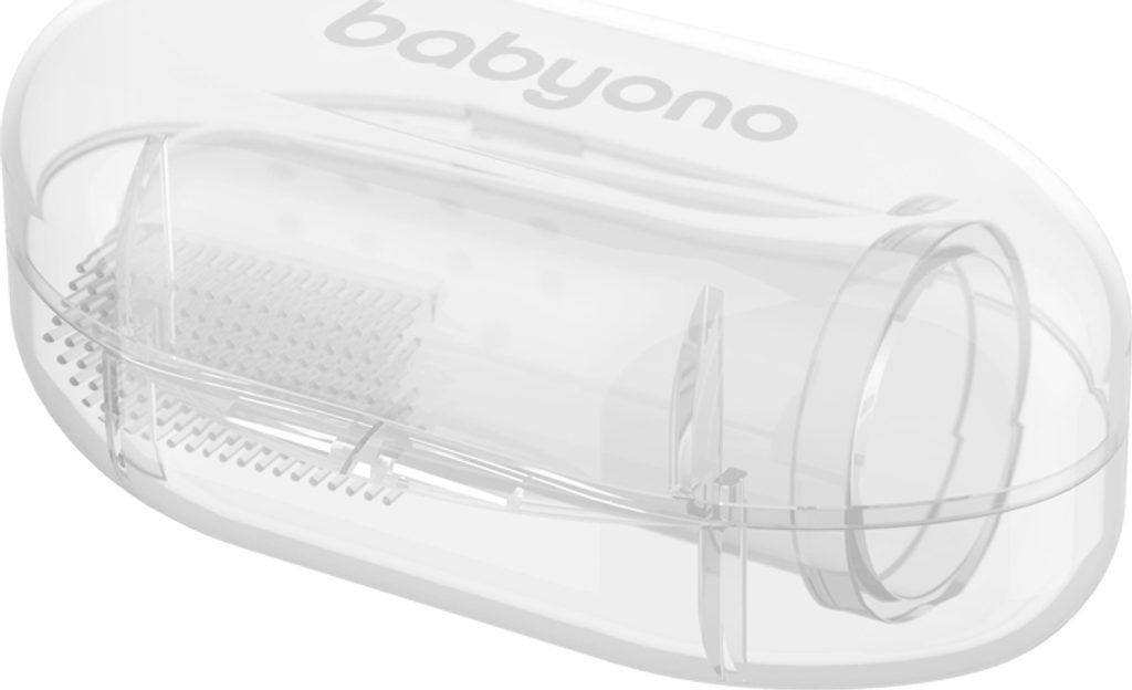 O ústní hygienu miminka je třeba pečovat od prvních dnů jeho života. Čisté dásně a následně první mléčné zuby jsou jednou z podmínek zdravého chrupu. Nejlepším řešením a pomocí je kartáček na první zoubky – speciální překrytí na prst rodiče. Na jedné straně má produkt jemné ouška a na druhé straně kartáč vyrobený z měkkého materiálu. Jemně masíruje dásně a přináší úlevu zejména při prořezávání zubů. Ke kartáčku je dodáváno pouzdro, ve kterém můžete produkt bezpečně a hygienicky uložit. Je vyrobena z bezpečného materiálu, který neobsahuje Bisfenol A.