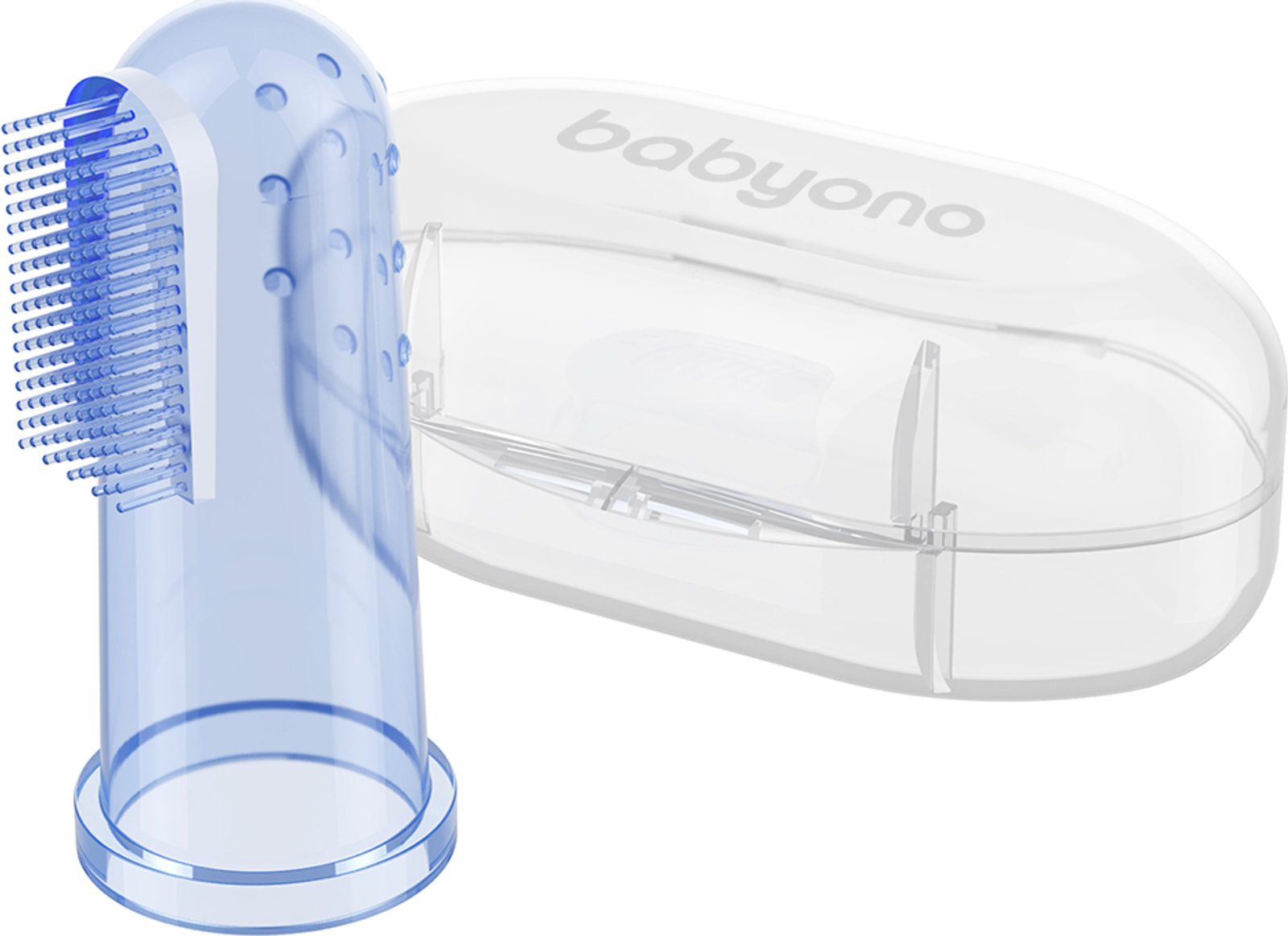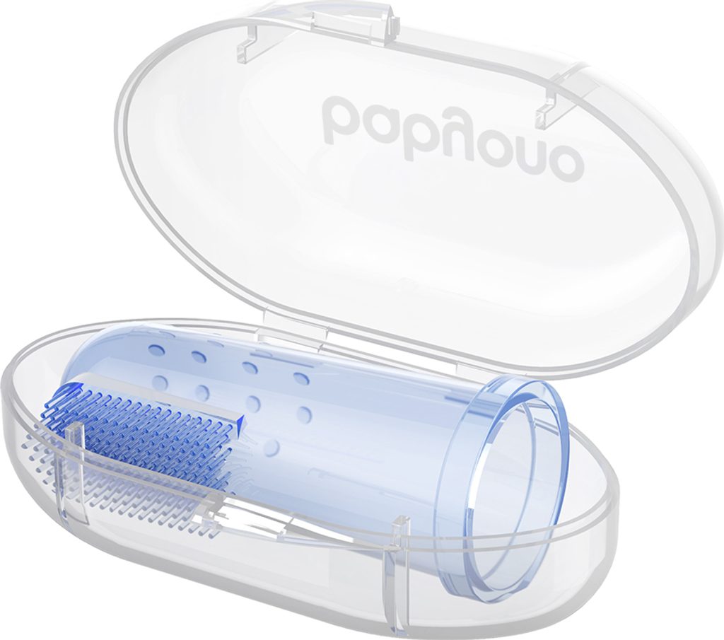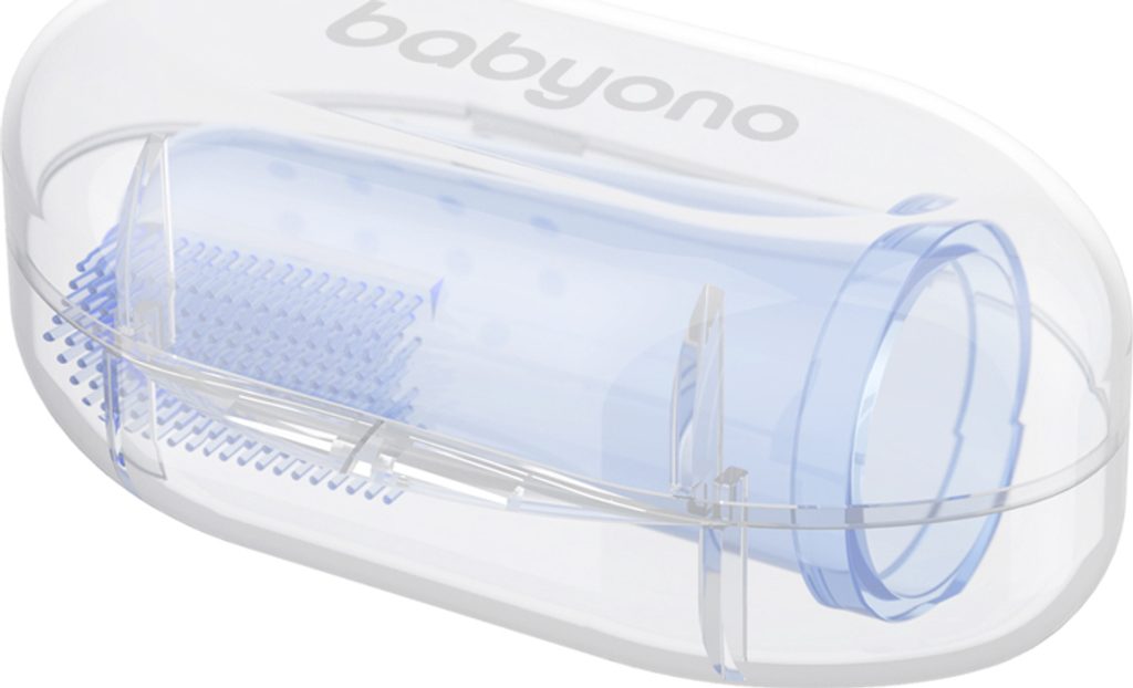 O ústní hygienu miminka je třeba pečovat od prvních dnů jeho života. Čisté dásně a následně první mléčné zuby jsou jednou z podmínek zdravého chrupu. Nejlepším řešením a pomocí je kartáček na první zoubky – speciální překrytí na prst rodiče. Na jedné straně má produkt jemné ouška a na druhé straně kartáč vyrobený z měkkého materiálu. Jemně masíruje dásně a přináší úlevu zejména při prořezávání zubů. Ke kartáčku je dodáváno pouzdro, ve kterém můžete produkt bezpečně a hygienicky uložit. Je vyrobena z bezpečného materiálu, který neobsahuje Bisfenol A.