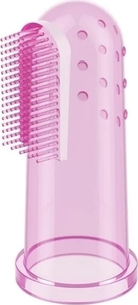 O ústní hygienu miminka je třeba pečovat od prvních dnů jeho života. Čisté dásně a následně první mléčné zuby jsou jednou z podmínek zdravého chrupu. Nejlepším řešením a pomocí je kartáček na první zoubky – speciální překrytí na prst rodiče. Na jedné straně má produkt jemné ouška a na druhé straně kartáč vyrobený z měkkého materiálu. Jemně masíruje dásně a přináší úlevu zejména při prořezávání zubů. Ke kartáčku je dodáváno pouzdro, ve kterém můžete produkt bezpečně a hygienicky uložit. Je vyrobena z bezpečného materiálu, který neobsahuje Bisfenol A.