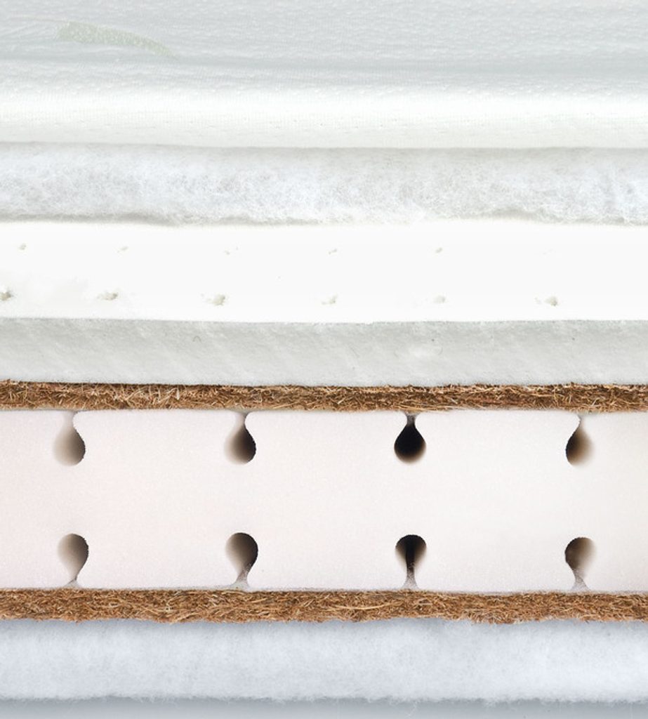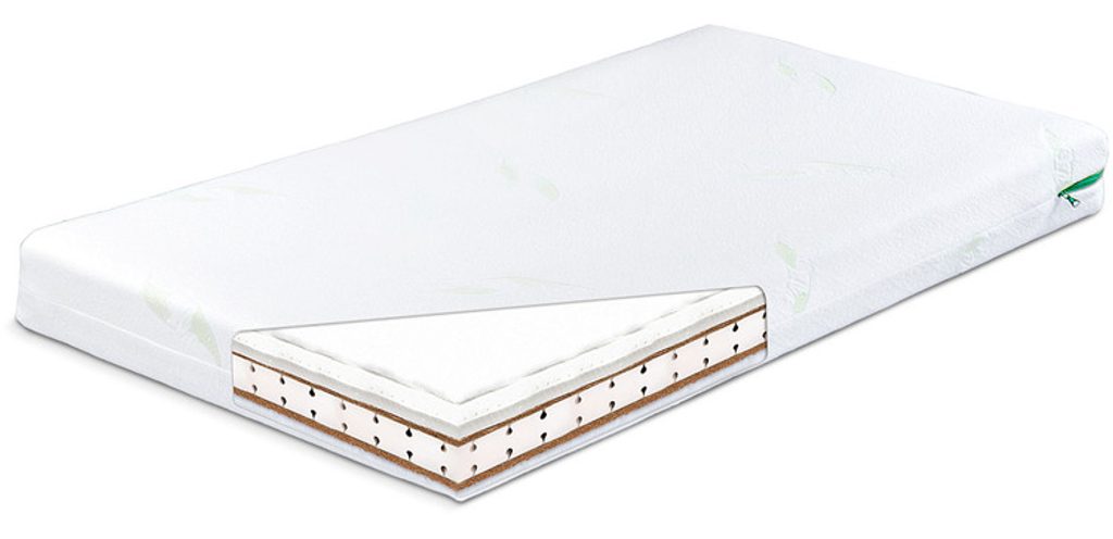 Dětská molitanová matrace Sensillo s dvojitou vrstvou kokosového vlákna, latexem a potahem s Aloe Vera, který lze prát v pračce na 40°C.