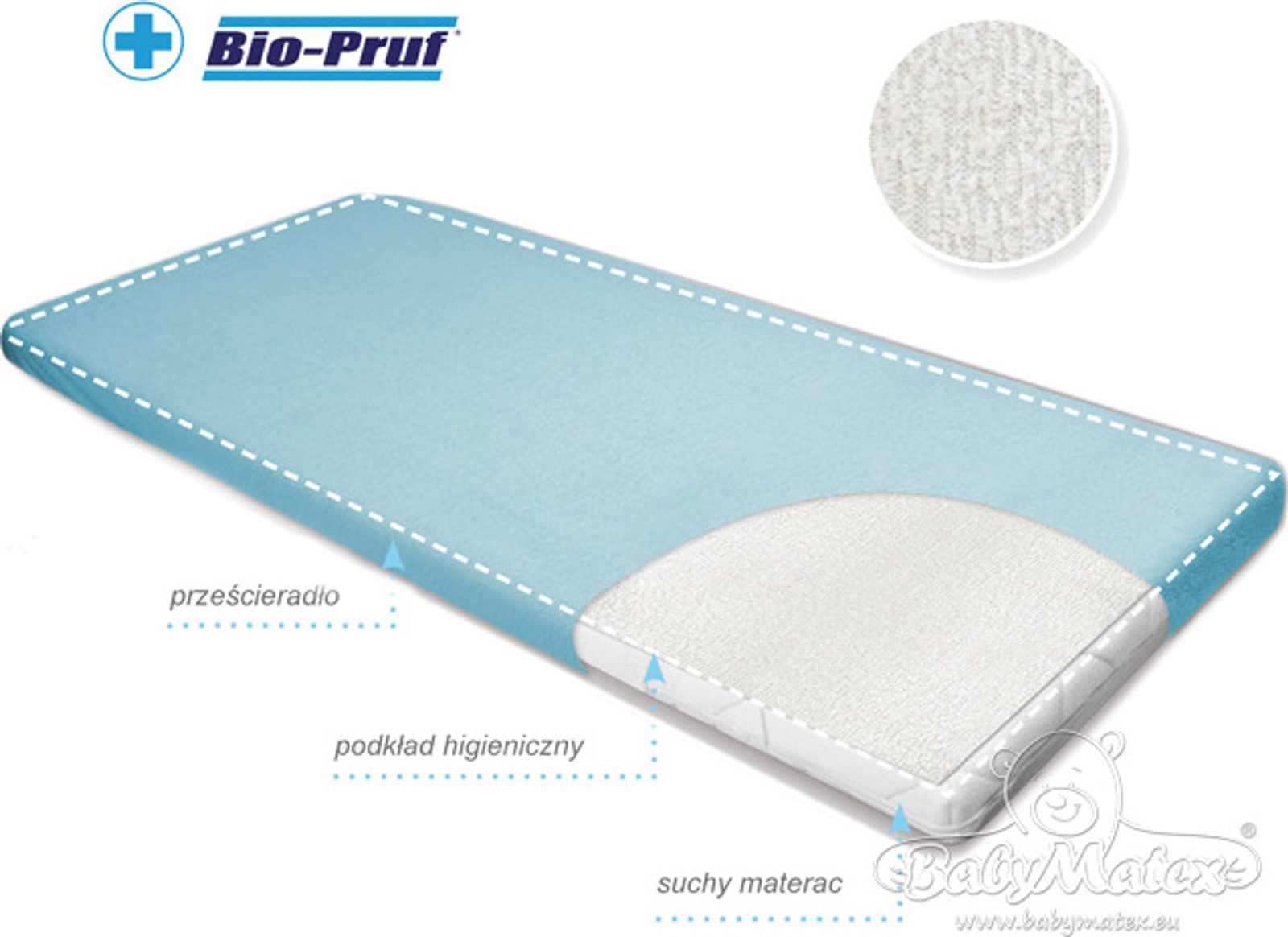Vrchní vrstva je vyrobena z měkkého froté, aby se zabránilo podráždění pokožky, zatímco spodní vrstva základu je vyrobena z PVC. Nepropouští tekutiny, chrání matraci před navlhnutím, což zajišťuje zdravý a klidný spánek dítěte.