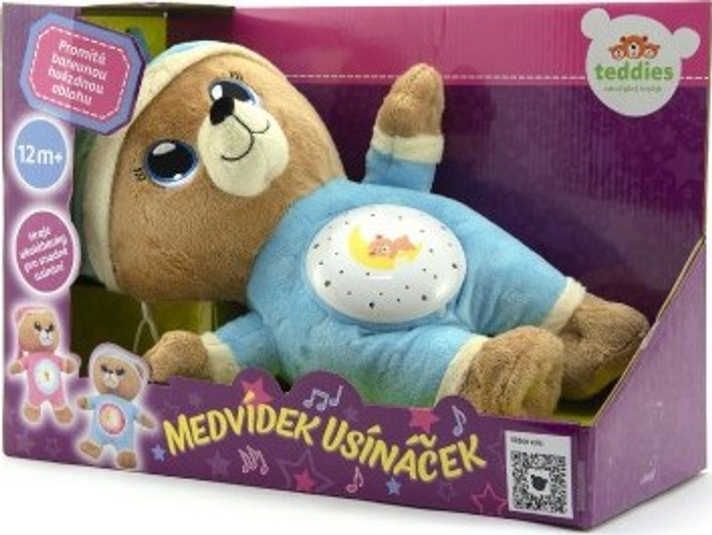 Každé malé dítě má svého mazlíčka na usínání, ke kterému se rádo tulí a cítí pocit bezpečí. Medvídek Usínáček je k tomu jako stvořený. Stačí zmáčknout jeho kouzelné bříško a z pokojíčku je rázem říše snů. Medvídek Usínáček promítá na strop barevnou hvězdnou oblohu a hraje 4 uklidňující ukolébavky. Je heboučký, měkoučký, láká k mazlení. S Usínáčkem děti snadno usínají a mají klidnou celou noc.
