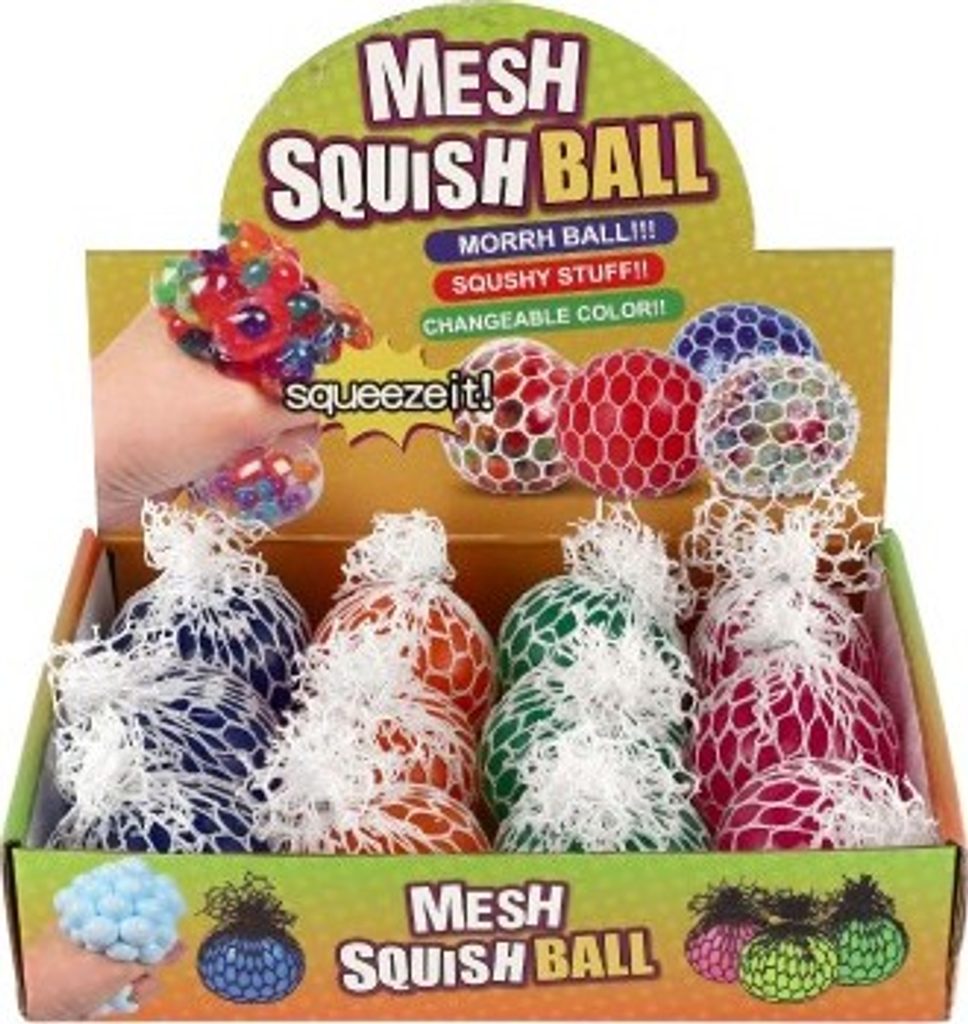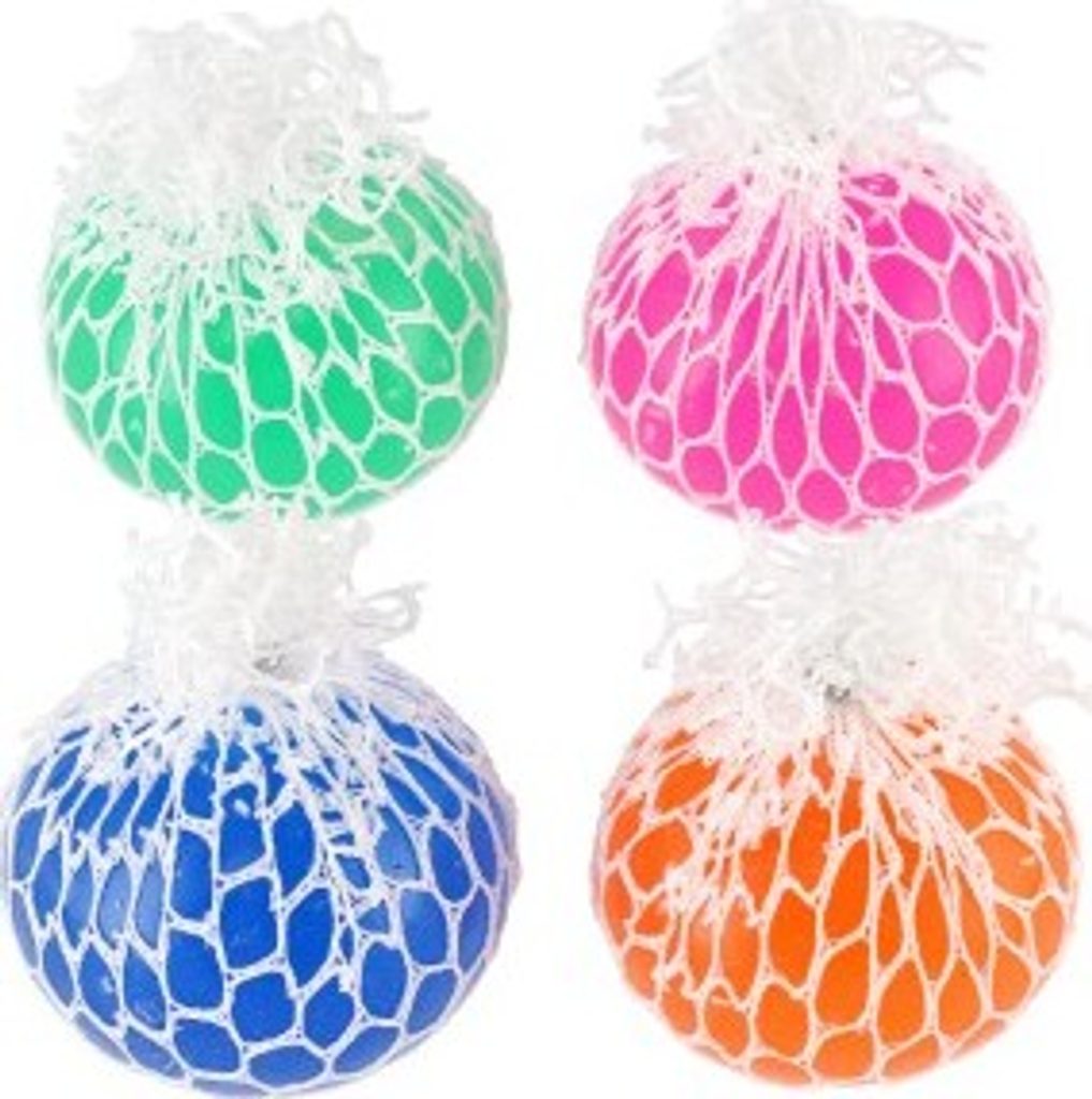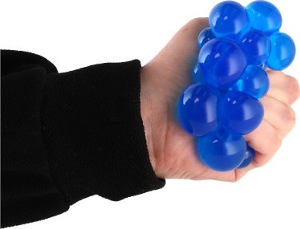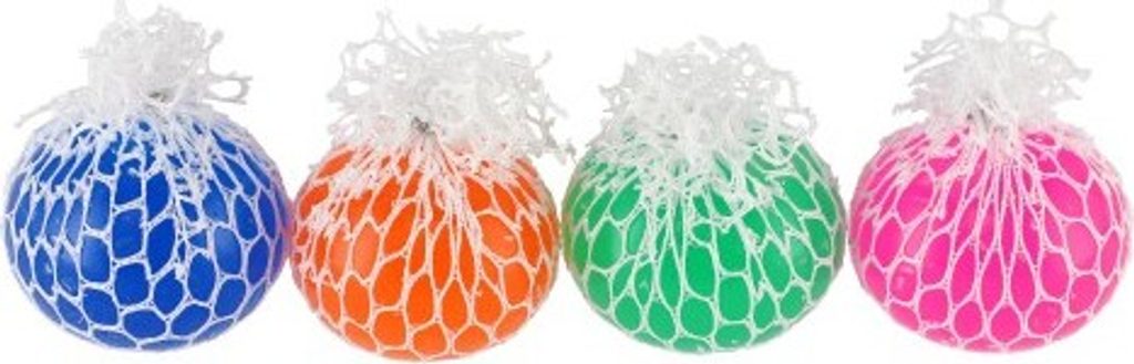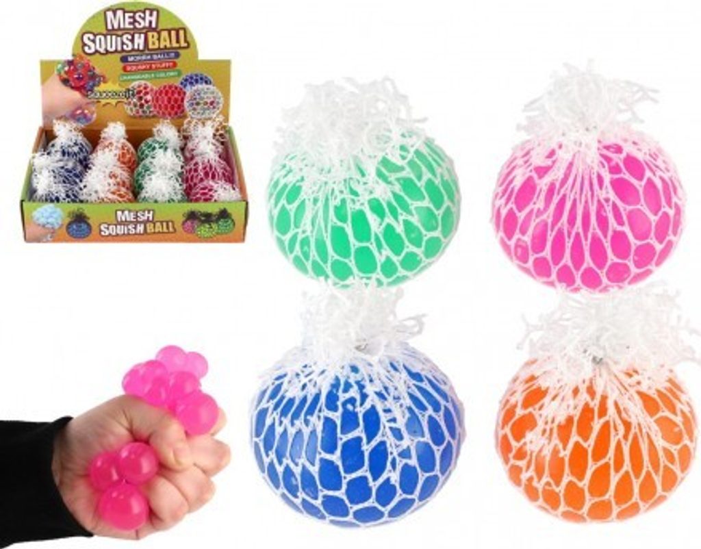 Míček lze všemožně mačkat a hníst v ruce. Při mačkání vylézají z ok síťky bubliny. Vhodné na uvolnění stresu.