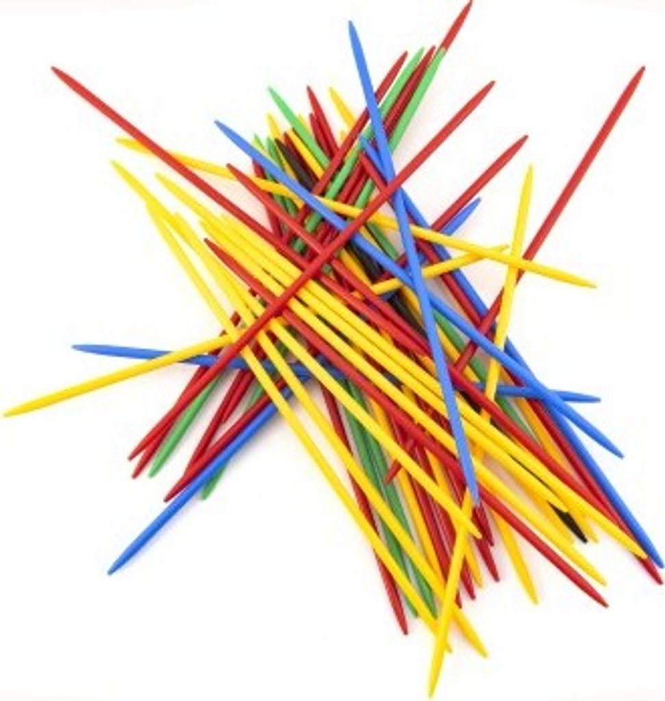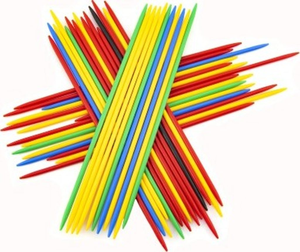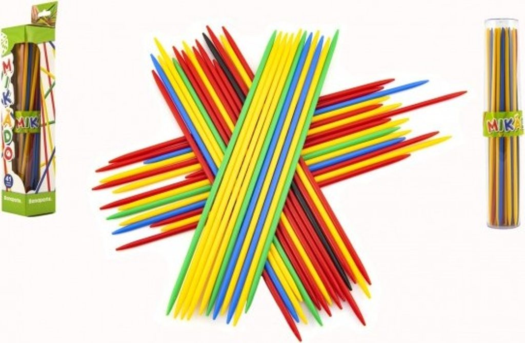 Celý svazek tyčinek se zarovná, sevře jednou z dlaní a pak se náhle z ruky uvolní na stolní desku či jinou podložku. Tyčinky dopadnou na stůl a soupeři pak vytahují z hromádky jednu za druhou. Špatné rozhození je možné 2x zopakovat. Pokud při vytahování dojde k pohnutí kterékoliv jiné tyčinky, ve hře pokračuje soupeř. Po získání tyčinky zvané Mandarin či Mikádo (černá nebo zelená) si jí lze při uvolňování ostatních pomáhat. Hra končí po rozebrání všech tyčinek. Vyhraje ten ze soupeřů, kterému se podaří nasbírat tyčinky s největším bodovým součtem. Plastové pouzdro obsahuje 41 ks plastových tyčinek.