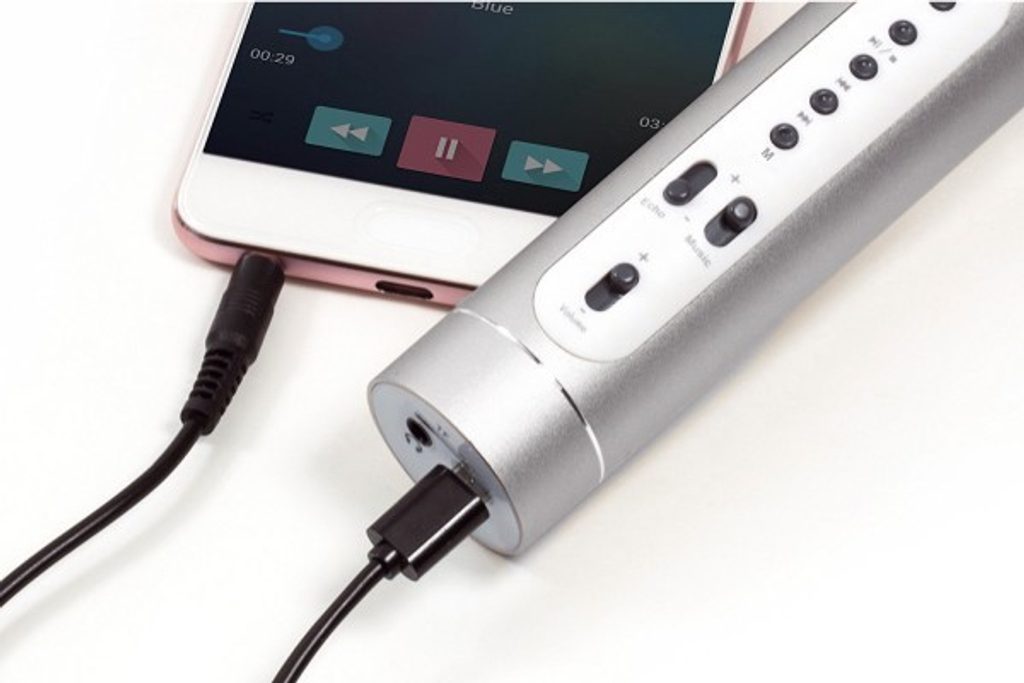 Bezdrátový karaoke mikrofon nesmí chybět na žádné párty. Pomocí kabelu nebo Bluetooth propojíte svůj telefon s mikrofonem. AUX konektor pro přehrávání hudby z mobilního telefonu, PC, tabletu nebo MP3/MP4 přehrávače.