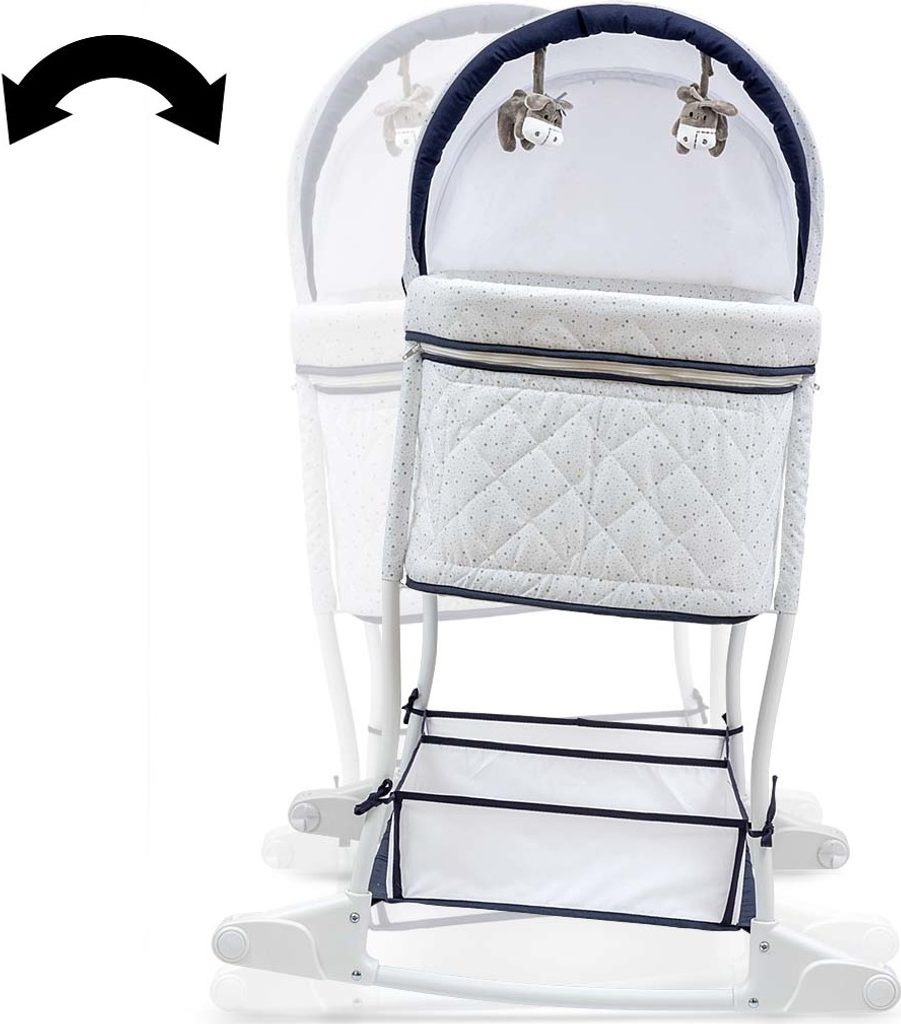 Kolébka/postýlka je vybavena praktickým úložným prostorem - košíkem na dětské potřeby a příslušenství umístěným ve spodní části, má 2 přihrádky. Ovládání kolébky umožňuje rychlé a plynulé přechody mezi funkcemi kolébky Dream On. Potahy stříšky a přenosné postýlky jsou snímatelné pro šetrné praní. Měkká matrace je součástí azajistí vašemu děťátku pohodlný spánek.