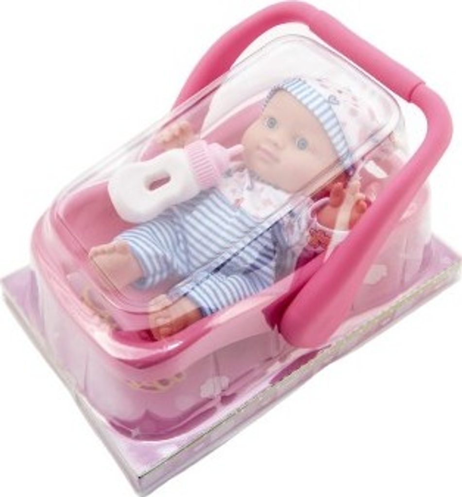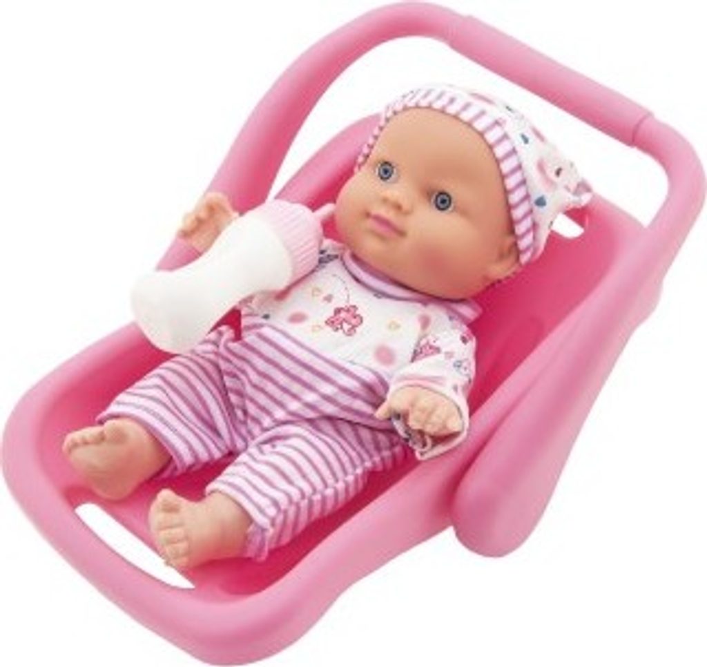 Touto panenkou zaručeně uděláte radost každé holčičce. Miminko je v dětském nosítu, aby jej mohly malé maminky nosit kam potřebují. Miminko má u sebe flašku na mléko.