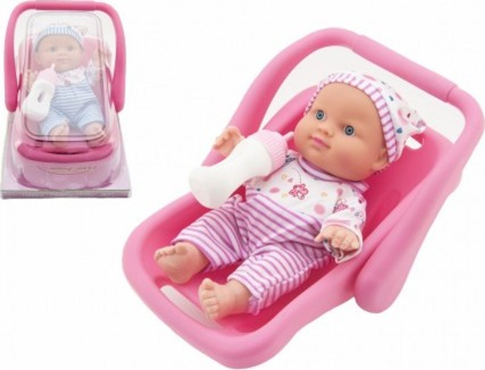 Miminko/Panenka pevné tělo v nosítku s lahvičkou - mix 2 barvy