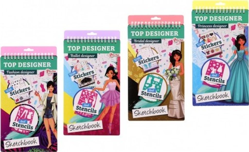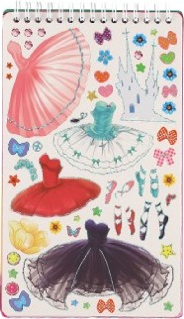 Vymyslete vlastní modní kolekci s tímto blokem. Modely můžete ozdobit doplňky, které jsou součástí.