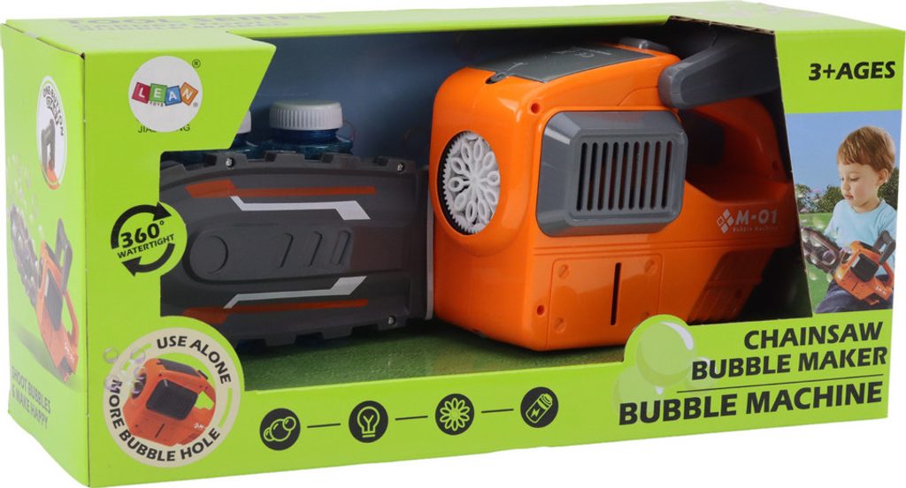 Stroj na mýdlové bubliny ve tvaru motorové pily, ač se zdá být zdánlivě nezvyklou kombinací, nabízí dětem nevšední dobrodružství ve světě kreativní hry. Její jedinečný oranžový design okamžitě upoutá pozornost dětí a vybízí je k prozkoumávání a objevování možností skrytých v této neobvyklé hračce.
