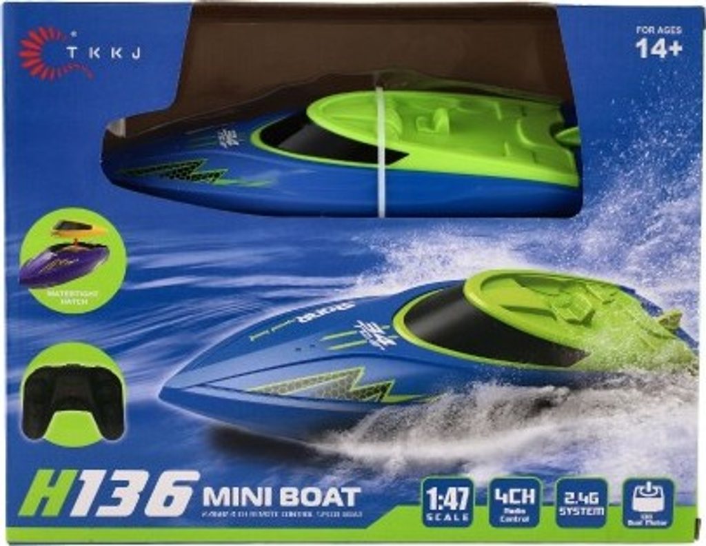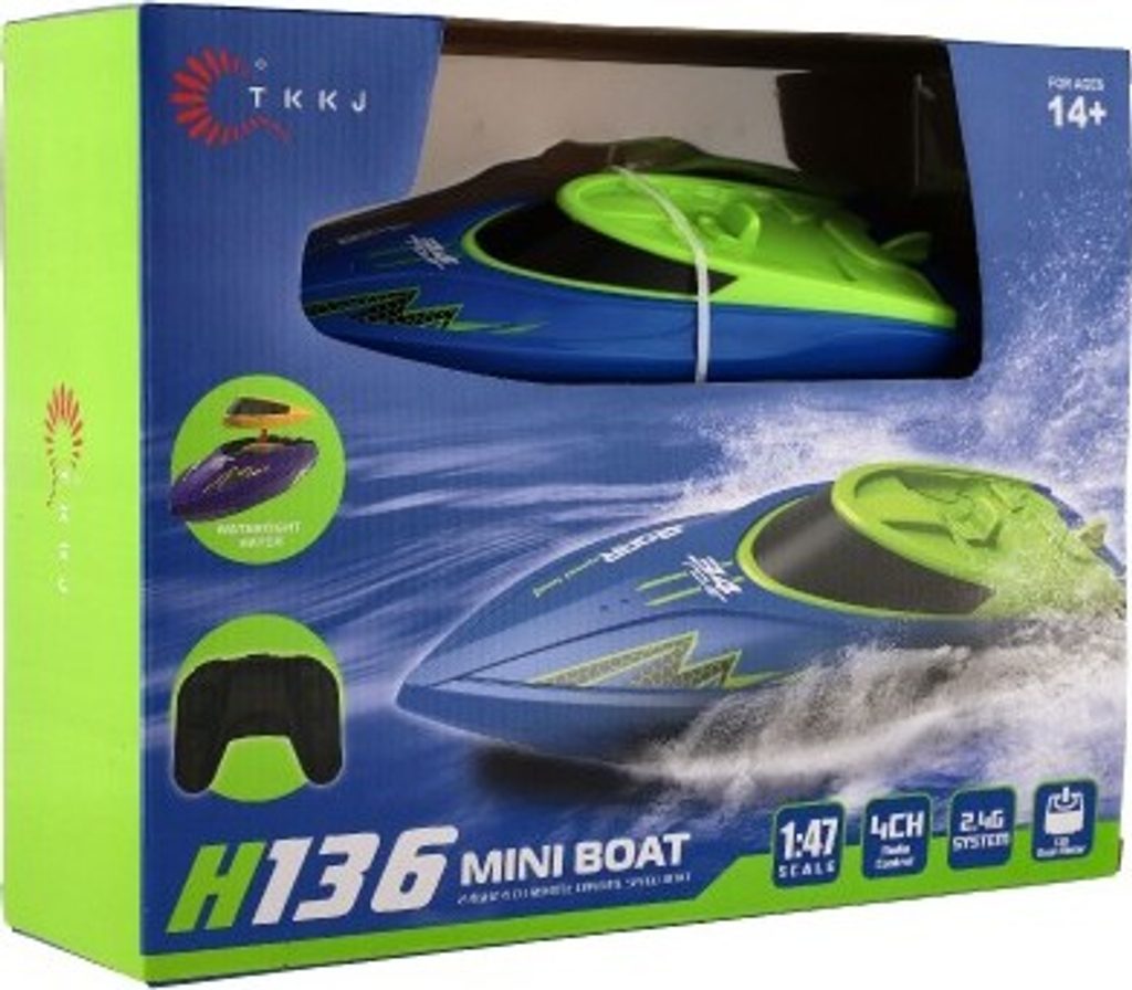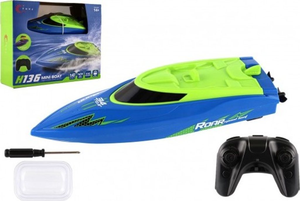 Motorový člun u kterého se stanete kapitánem! Dejte člun na vodu a díky dálkovému ovladači můžete loď ovládat jak je libo! Měřítko je 1:47. Frekvence 2,4 Ghz. Loď je na nabíjecí pack, který schováme do vodotěsného krytu, ovladač je na 2x AA, které nejsou součástí balení.