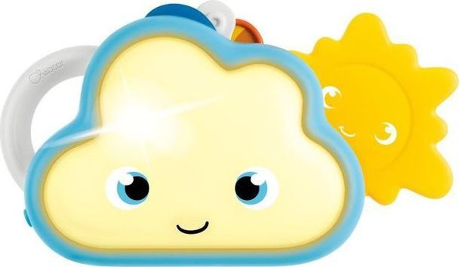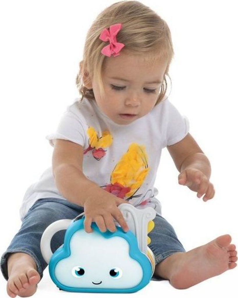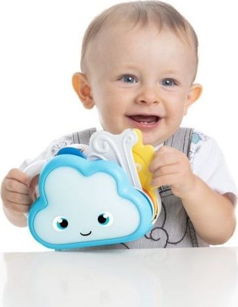 Mráček je elektronická hračka, která učí prvky související s počasím tím, že je kombinuje s tvary, melodiemi, zvuky a barvami. Hračka představuje 4 stavy počasí: déšť, vítr, duha a slunce. Každý prvek počasí je spojen s určitým tvarem, barvou, zvukem a melodií. Batole, aby objevilo více druhů souvisejících s jevy počasí, vytahuje barevné prvky, procvičuje jemnou motoriku. Hračka nabízí režim ztlumení, ve kterém lze vypnout zvukové efekty. A co víc, oblak se rozsvítí měkkým světlem v závislosti na vysunutém prvku a poskytuje další jemné podněty. Hračka učí dítě barvy, rozvíjí jeho pozornost, sluch a manuální koordinaci.