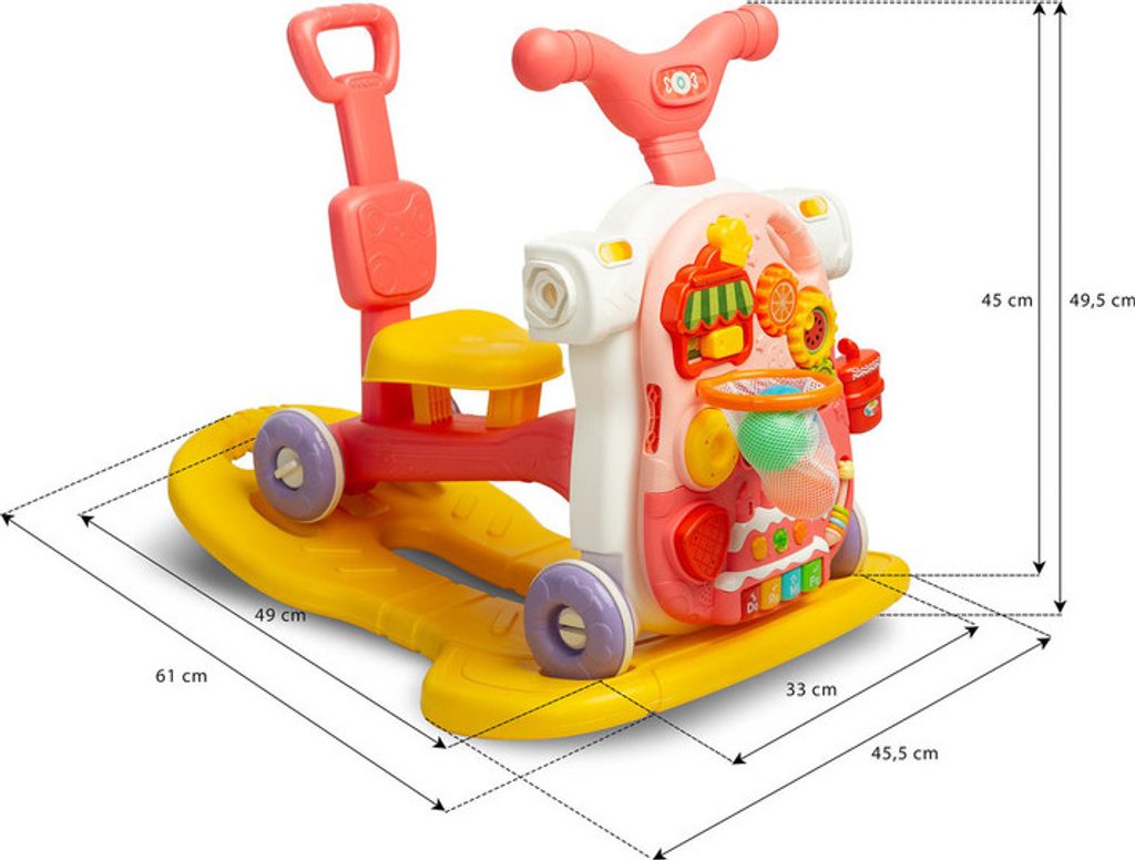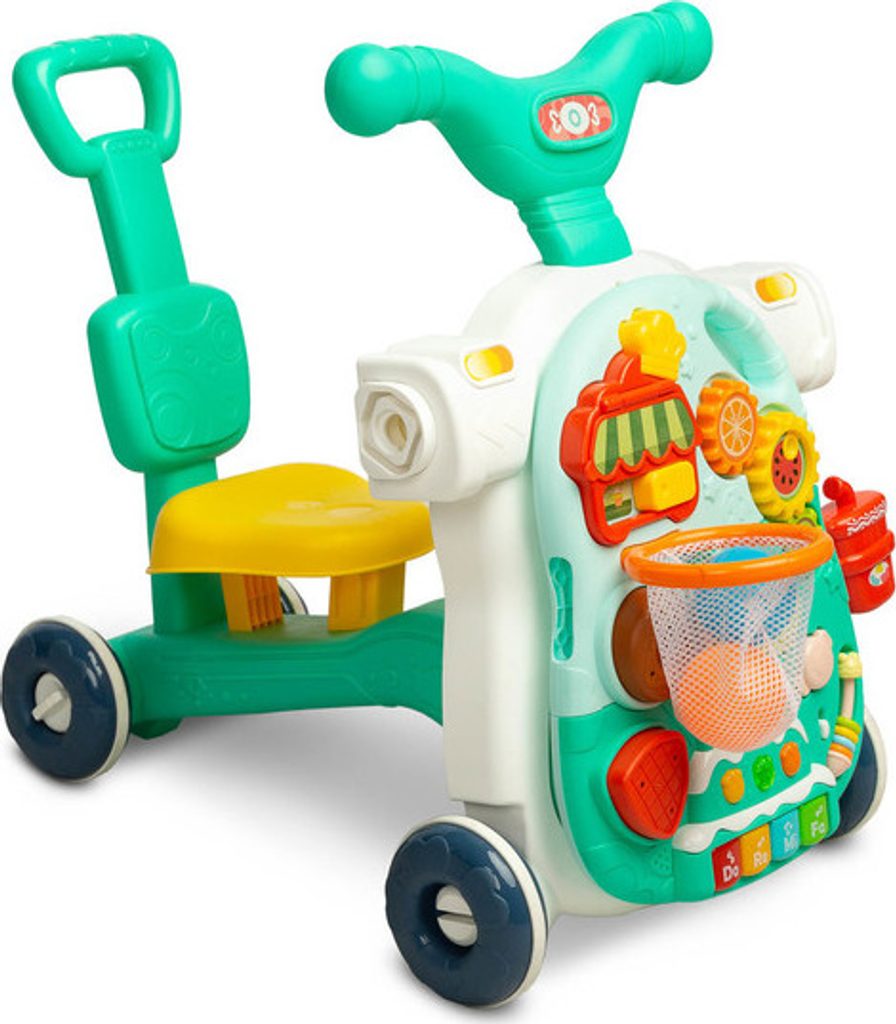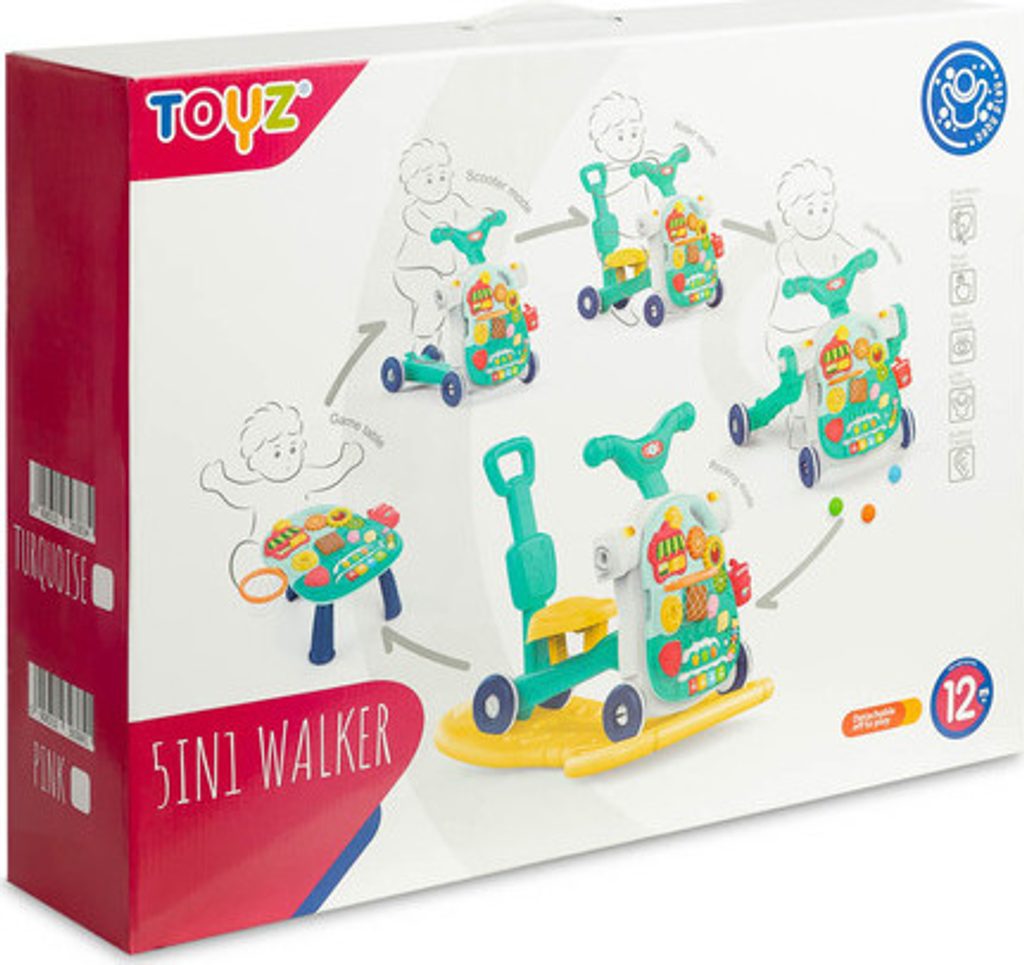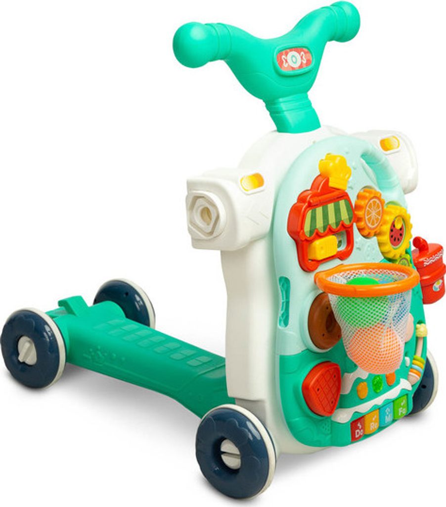 Multifunkční chodítko 5v1 je moderní výrobek, který nenechá vaše dítě nudit. Množství možností použití, barevné prvky a hudební panel umožní miminku hrát si celé hodiny. Aby dítě získalo co nejvíce zážitků, lze hračku složit 5 různými způsoby: chodítko, koloběžka, houpací vozítko, pojízdný vozík a stolek. Hračka je vhodná pro děti starší 12 měsíců.