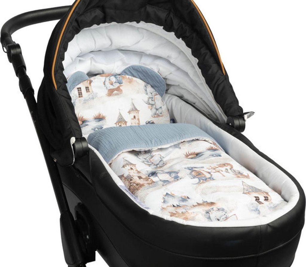 Sada obsahuje polštář a přikrývku z na dotek příjemného mušelínu a bavlny. Set se skvěle hodí do kočárku, postýlky nebo jako měkká podložka pro vaše miminko. Polštář samotný lze použít jako plyšovou hračku. Souprava je vyrobena ze dvou materiálů - vnitřek je 100% bavlna a vnější je jemný mušelín.