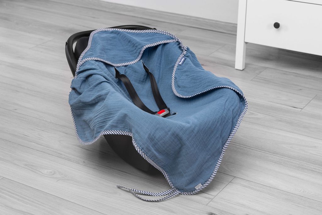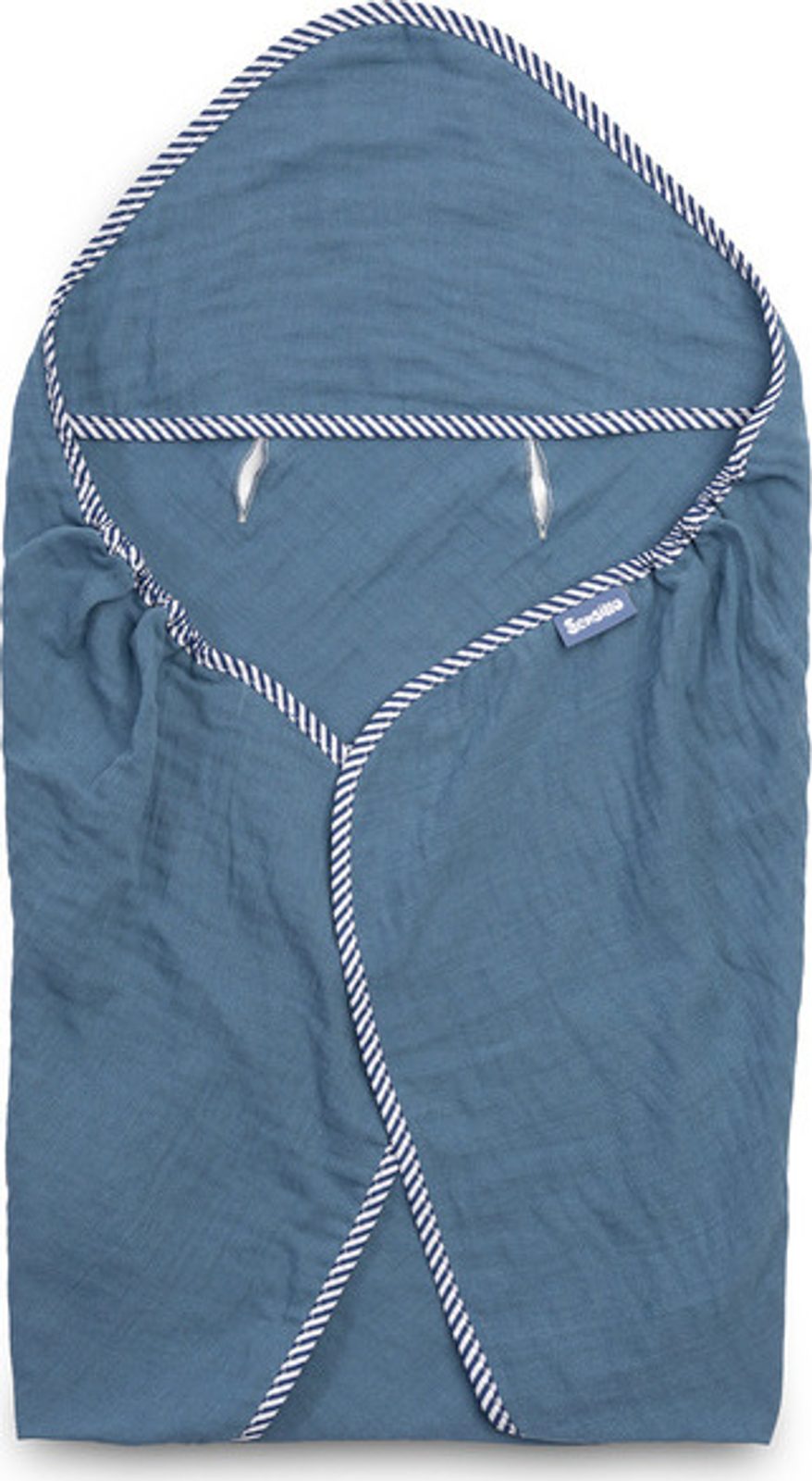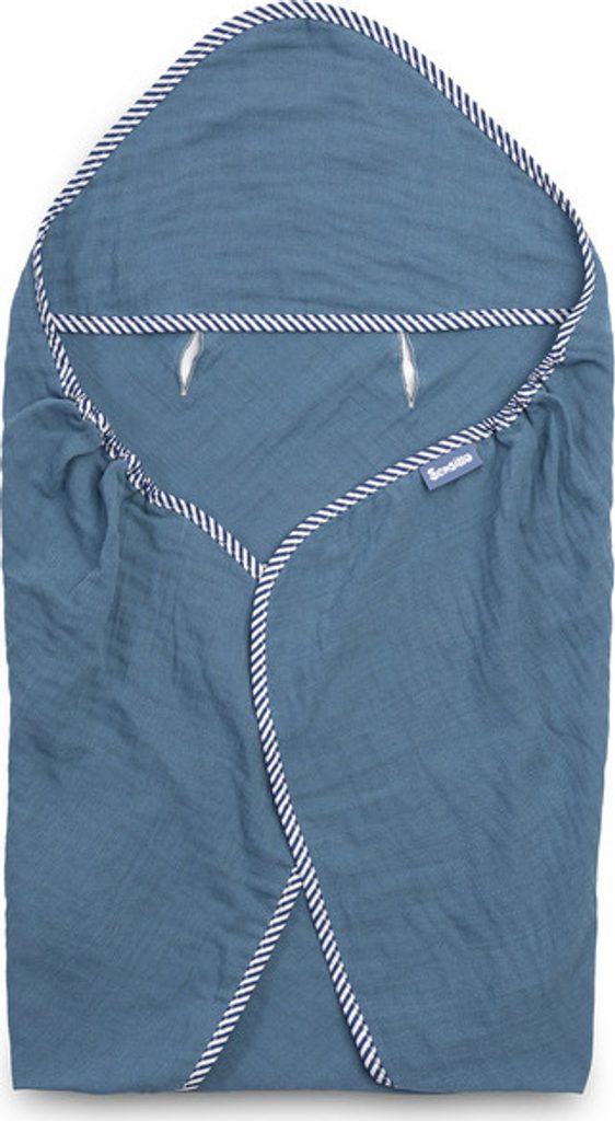 Mušelínová zavinovačka chrání před sluncem, větrem a hmyzem. Díky své lehkosti a prodyšnosti zabraňuje přehřátí dítěte. Dá se použít i jako přikrývka. Látka příjemná na dotek zajistí vašemu dítěti pohodlí na cestách. Vyrobeno z 100% bavlny. Má otvory pro 3-bodové pásy.