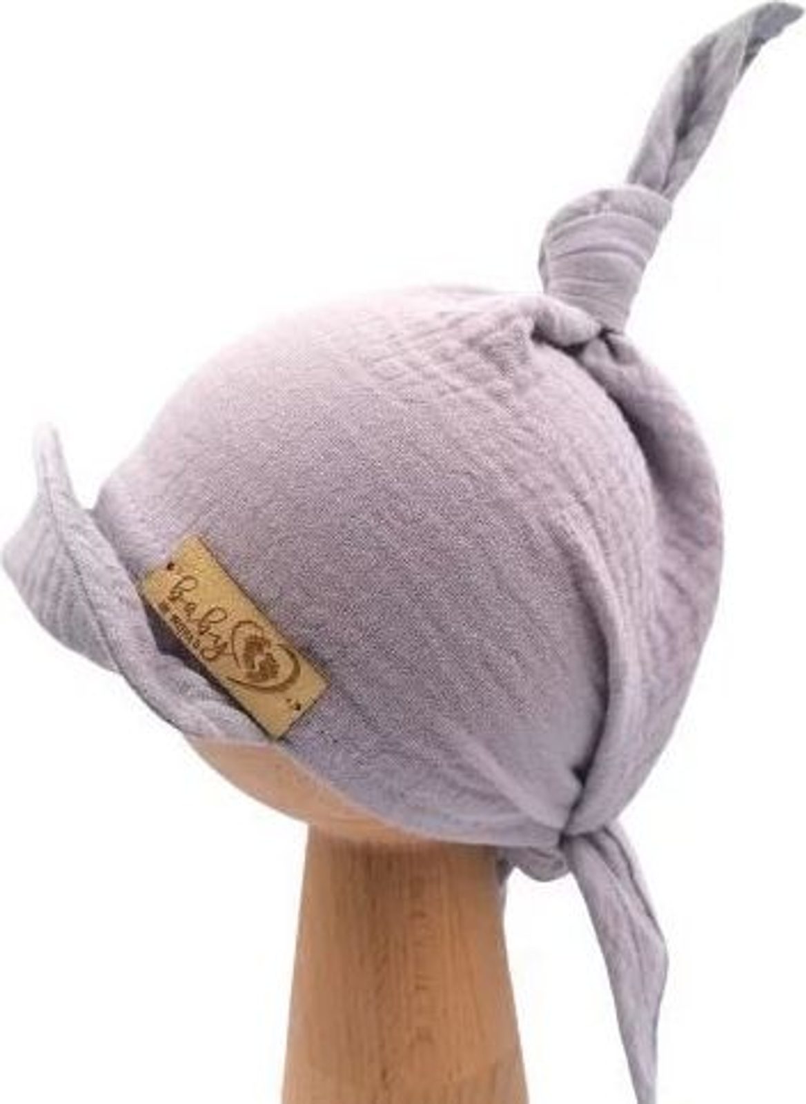 Šátek s kšiltem, ideální pro miminka. Šátek ochrání před sluncem nebo větrem. Byl vyroben ze 100% mušelínové tkaniny, díky čemuž je ideální na léto.