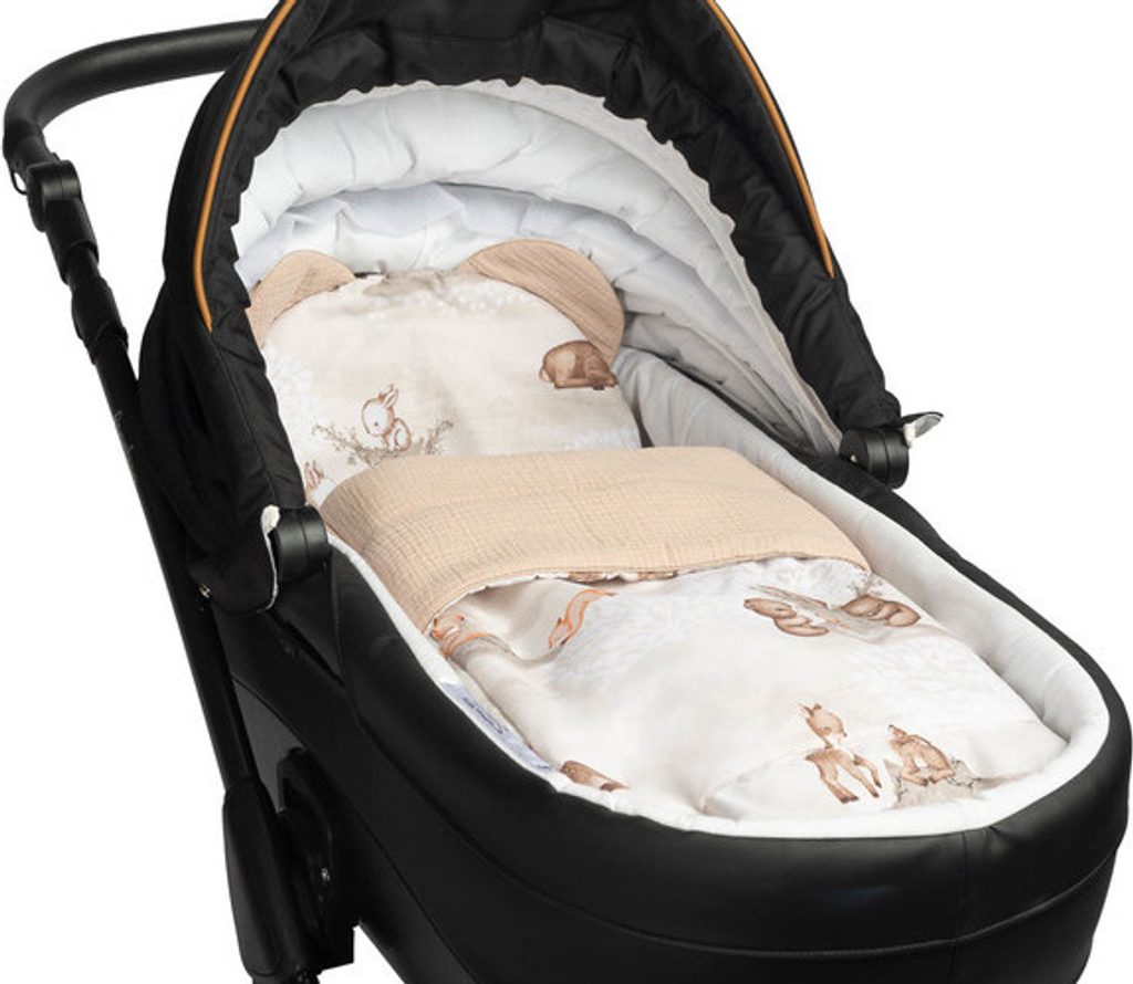 Mušelínový set do kočárku s oušky, Lesní zvířátka, meruňková